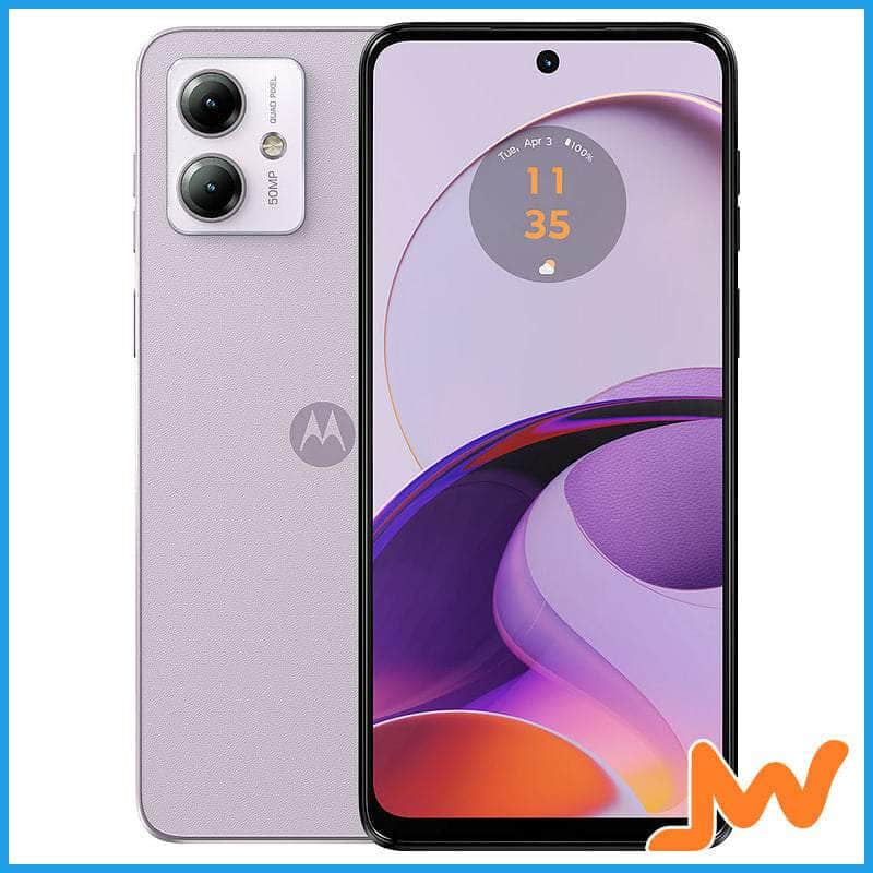 Motorola G14 (Dual Sim, 128GB/4GB, 6.5 ) Pale Lilac Incredibly sharp 6.5" Full HD display. Stereo speakers with Dolby Atmos. moto g14 covers all the details. Incredibly sharp 6.5" Full HD display Stereo speakers with Dolby Atmos Advanced 50MP camera system 128GB built in storage Outstanding battery life