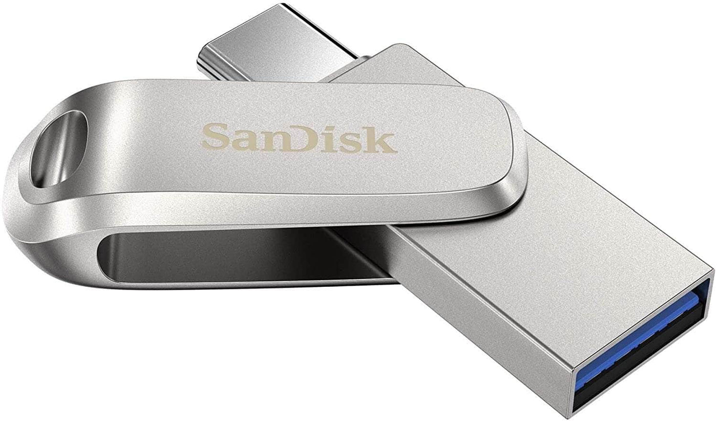 Looking for stylish storage that works across your USB Type-C and Type-A devices? Whether you’re taking amazing photos of your latest adventure or creating content in the office, the SanDisk Ultra Dual Drive Luxe is the all-metal, 2-in-1 flash drive that lets you easily move files between USB Type-C smartphone, tablets and Macs and USB Type-A computers.(2) Just plug in this premium drive to easily free up space on your smartphone or to automatically back up your photos, videos, music, documents and contacts.(3) Plus, the dual-purpose swivel design in a high-quality metal housing protects connectors and features a keyring hole to take your drive on the go. * 1GB = 1,000,000,000 bytes. Actual user storage less. (1)Read speeds up to 150MB/s. Write speed lower and vary by capacity. USB Type-C port with USB 3.1 Gen 1/ USB 3.0 support required. Based on internal testing; performance may be lower depending upon host device, interface, usage conditions and other factors. 1MB = 1,000,000 bytes. (2)Mobile device requires USB Type-C port and On-The-Go (OTG) support. See official SanDisk Dual Drive-C website for list of compatible devices. (3)Download and installation of SanDisk Memory Zone app required. See official SanDisk Memory Zone website for more details.