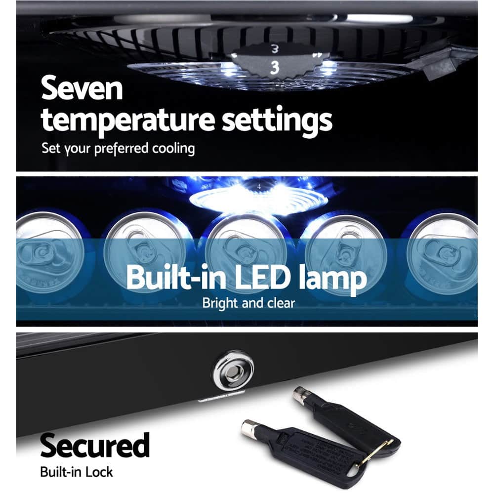Our portable Bar Fridge is great for keeping a variety of food and beverages chilled and cooled without taking up too much space. Designed with seven temperature settings, the energy-efficient bar fridge lets you set your desired coolness and freshness. Other great features include adjustable shelves, double-glazed door, height-adjustable feet, built-in handle and consistent refrigeration to name a few. The compact bar fridge is also totally eco-friendly with its R600a freon-free refrigerant and well-made for robust use, such as the extra thick insulation and a built-in LED to ensure operation is smooth, quiet and hassle-free. The fridge also comes with a built-in lock to keep the contents safe and secure, especially useful in a retail environment after you close for the night. Suitable for both domestic and commercial use, the bar fridge is a cool investment time and again.