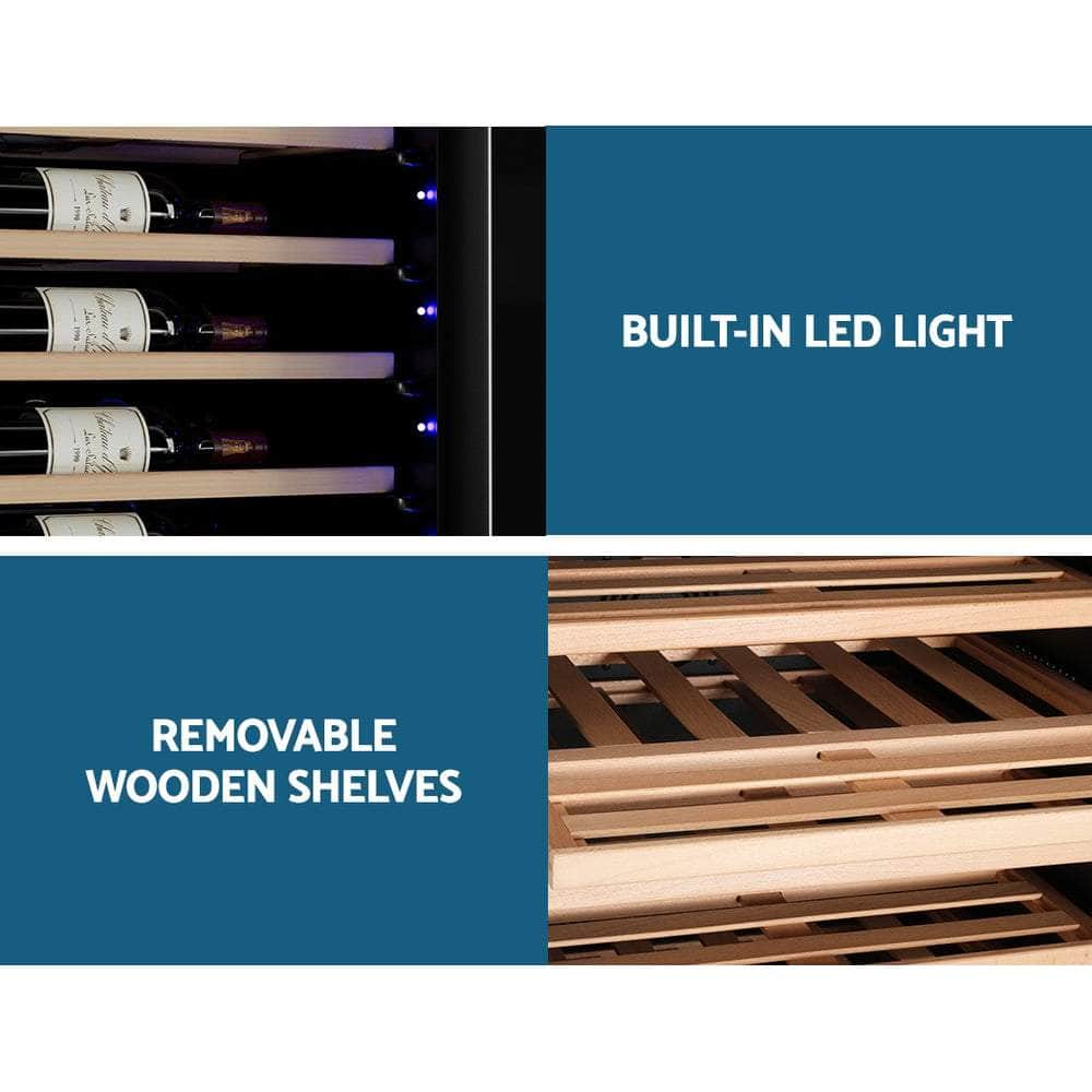 Need a reliable way to store your wine collection? Look no further than our Wine Cooler. Utilising the latest high-precision compressor cooling technology, our wine cooler ensures your favourite vintages are well kept at their recommended temperatures with its circulated cool air. The cooler has a dual zone system with two separate temperature-controlled zones, ensuring perfect cooling temperatures for both white and red wines. The temperature can be set between 5? and 13? for the upper zone (which is suitable for dry white and sparkling wines), and between 12? and 18? for the lower zone (which is suitable for red wines). The digital control panel makes for easy temperature adjustments while the built-in LED lights help you to see your wines in the best light. The stylish design stores up to 128 bottles of wine in a neat and tidy wood shelving system. Better still, the double-glazed glass door is UV-resistant and provides excellent insulation. The ensemble works quietly and efficiently and has a built-in lock for total peace of mind. Suitable for both home and commercial use. Treat your vintage collection with the care it deserves - invest in a Wine Cooler today.