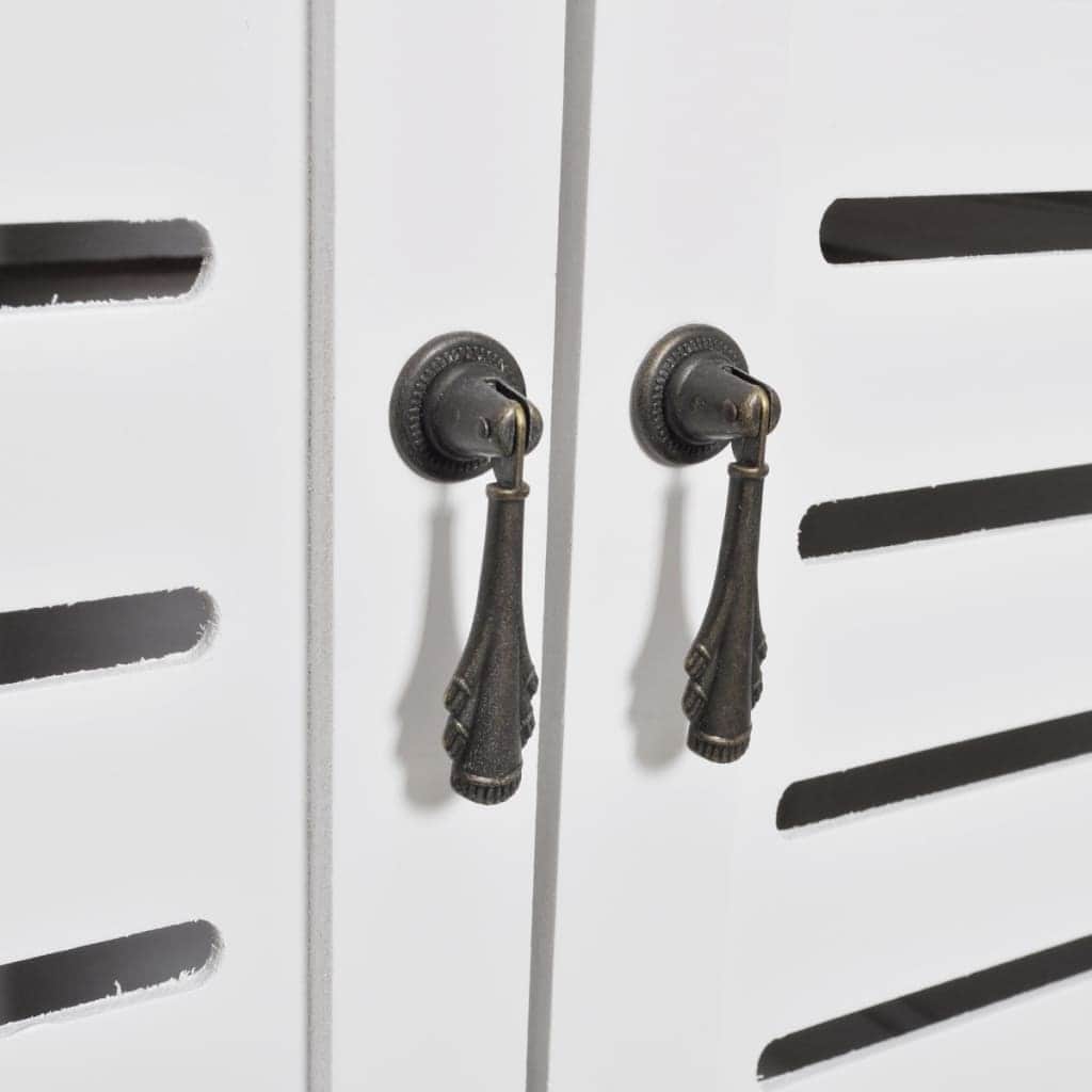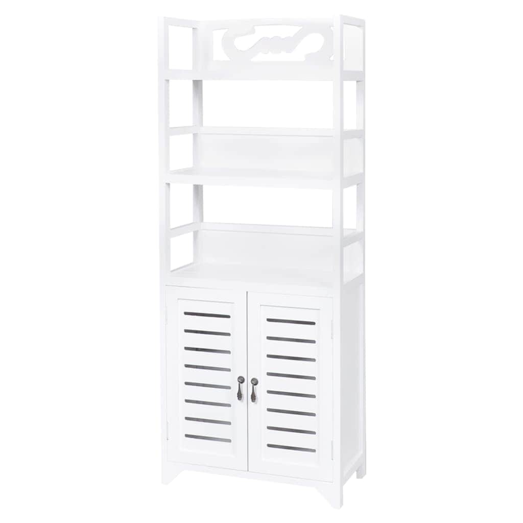 This elegant wooden bathroom cabinet is sure to be an eye-catcher in your bathroom. This floor standing cabinet has a white finish and will be an excellent storage solution for all your bathroom accessories, such as towels, laundry and cosmetics. This high-quality cupboard features a cabinet compartment including 2 doors and 3 upper shelves. This chest is versatile enough to be used in corridors, offices or guest rooms as well. It is handy to clean and maintain. Assembly is very easy.