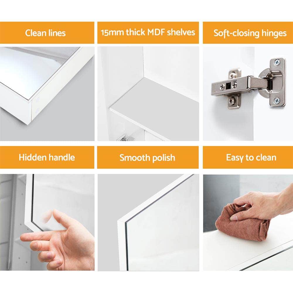 Finished in high gloss PU and made of quality 15mm MDF material, our Storage Mirror Cabinet is designed to be longlasting and durable with a touch of class. The three soft-closing doors open to lots of storage space within the cabinet with adjustable glass shelves to suit your various storage requirements for toiletries, medicine and other bathroom essentials.. Not least, the pencil-edge handles make this Storage Cabinet uniquely stylish whilst the crystal-clear mirrors reflect wide coverage with absolute clarity.