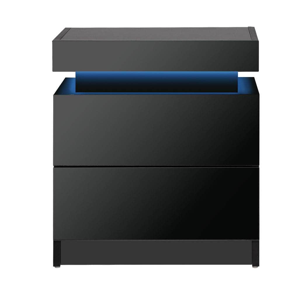 Bedside Table RGB LED Nightstand Cabinet 2 Drawers Side Table Furniture Black/White - Black