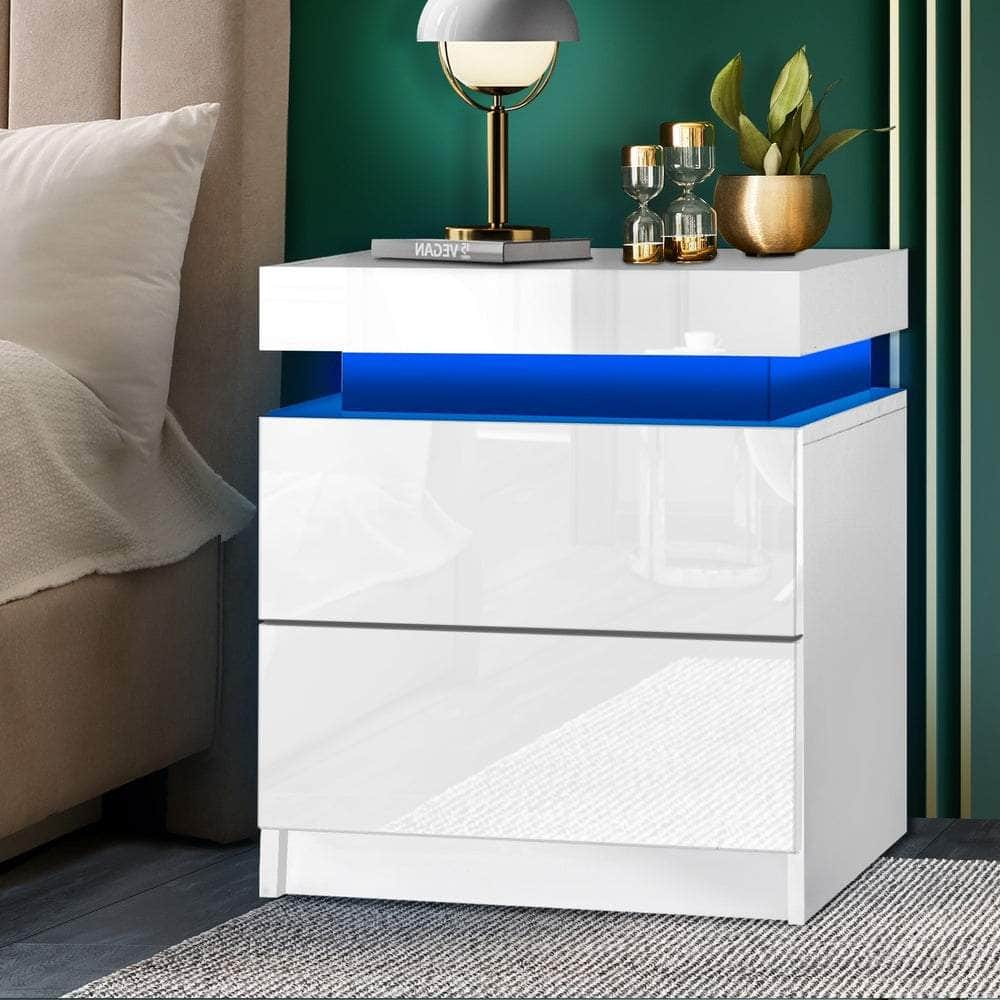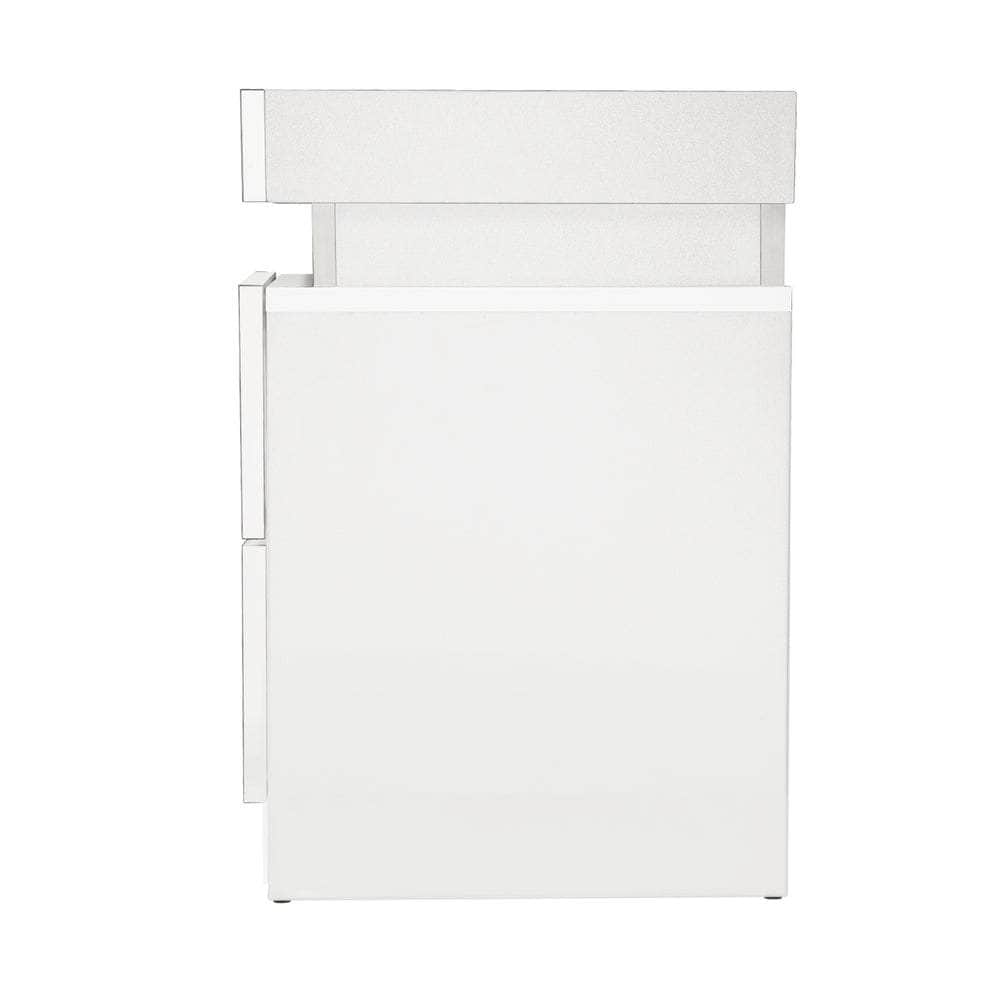 Bedside Table RGB LED Nightstand Cabinet 2 Drawers Side Table Furniture Black/White
