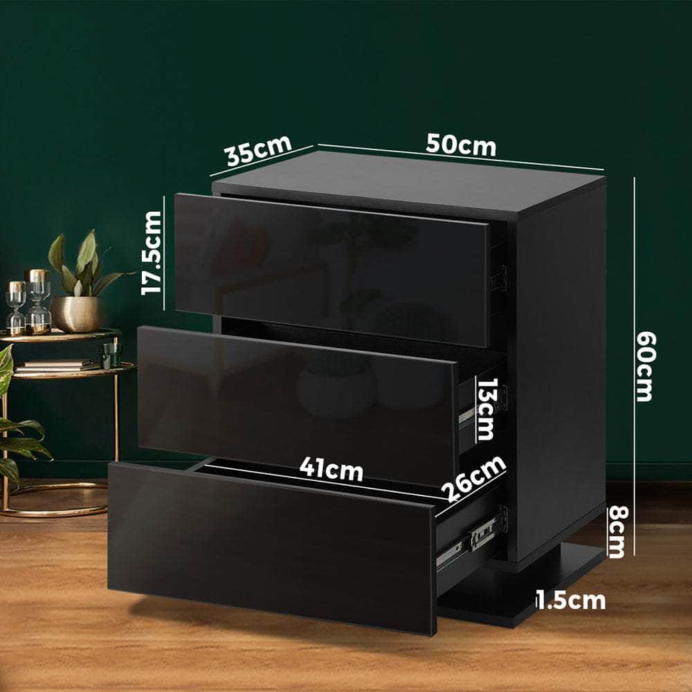 Bedside Table RGB LED Nightstand Cabinet 3 Drawers Side Table Furniture - Black