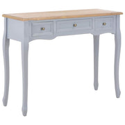 Our console table, featuring a simple yet timeless design, will surely make a great addition to your living room, dining room, hallway, and more. The table features excellent workmanship combined with great functionality. Thanks to its compact design, our console table occupies very little space and fits into smaller areas. Three smooth-rolling drawers offer you additional space for your ornaments, cosmetics and other private belongings. This dressing table is constructed from high quality MDF and pinewood with grey painted finish for durability, which gives you years of service.