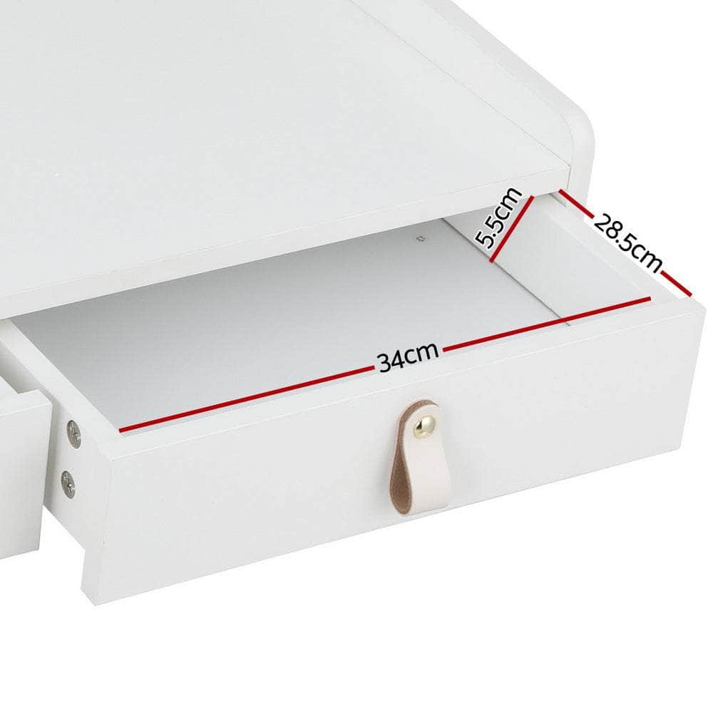 Make mornings simple with the Daphne Dressing Table. Crafted from 15mm thick particle board and designed for long-lasting use, the wall-mounted vanity with a cloud-shaped mirror exudes elegance and a sense of ethereal beauty. The mirror comes equipped with an LED strip that features warm, neutral and daylight white colours so you can look great under any light. With the convenience of a USB cable, you can effortlessly charge your devices while indulging in your beauty routine. Designed with practicality in mind, this vanity table boasts two spacious storage drawers, providing ample space to organise your essentials. The anti-rust drawer runners ensure smooth and seamless operation, guaranteeing a hassle-free experience. Emphasising ease and convenience, this floating vanity table is not only easy to maintain and clean but also a breeze to assemble. With its sleek design and luxurious features, it is the perfect embodiment of opulence and functionality. Elevate your space with this remarkable piece and indulge in the ultimate luxury of the Daphne Dressing Table.