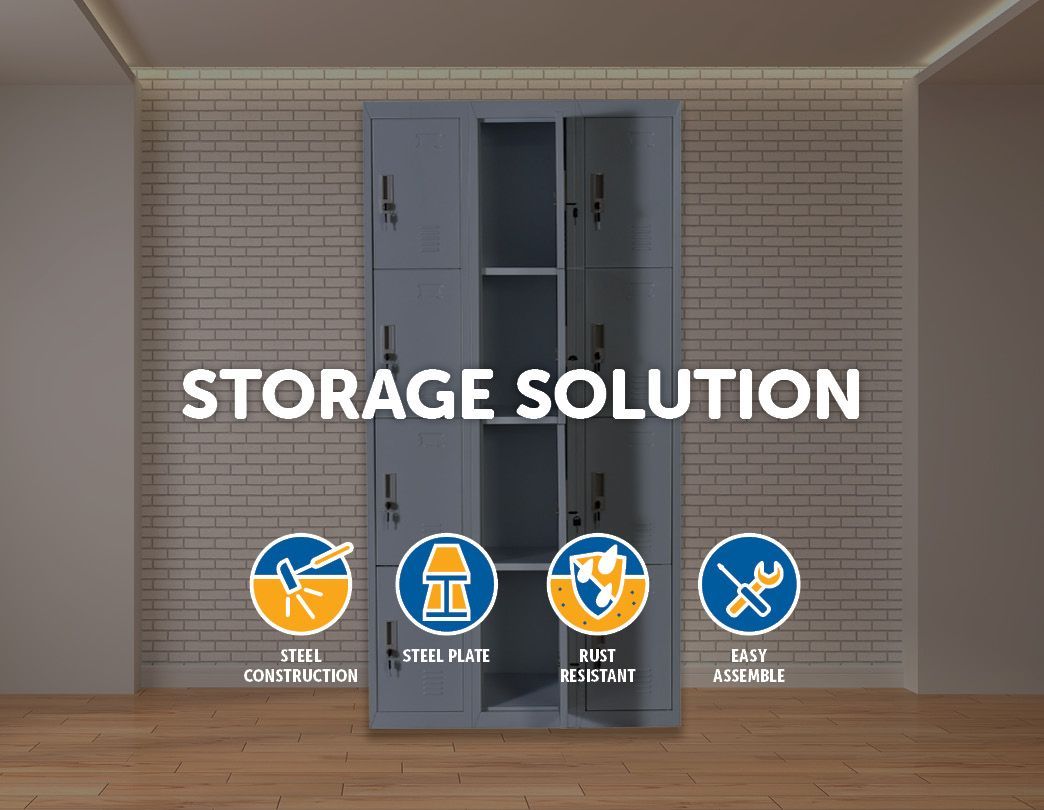 The locker is constructed with solid cold-rolled steel plate for excellent sturdiness and durability, not to mention an attractive look. The steel is also powder-coated to resist corrosion. The locker measures 180 x 90 x 36 cm, and the maximum recommended weight capacity is approximately 30kg per locker.. Privacy and security are assured with a simple lock and key design. There are spaces designated for labels to help identify lockers, and air vents are built-in to assure sufficient ventilation. Each lock comes with 2 keys.