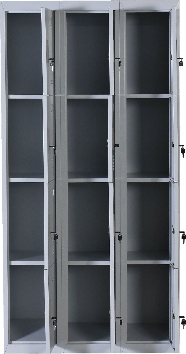 A full twelve lockers are arranged in a 3 x 4 grid, each providing ample storage space for a wide range of personal belongings. When you have multiple-user storage needs, this is your answer.