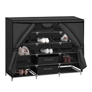 Store all your favorite footwear and essentials in one place. A Shoe Rack designed to ease your day to day life. Helps you keep all your footwear organized. An ultimate space saver place it anywhere you like and it will blend in perfectly with your home. Worried about getting damaged! Don’t be, it is built with high-quality non-woven fabric and metal frame. It is waterproof, rust-resistant, sturdy, and stable. The bottom is raised from the surface keeping it away from the ground. Connected with plastic ferrules, non-toxic, environment friendly, and durable. Convenient access, built-in metal zipper, and very easy to hook and loop. Store all your footwear related essentials in the bonus storage box, eases your last minute before you leave your home. Very easy to disassemble with its removable cover. Clean it hassle-free, very easy to wipe dirt and dust off. A beautiful looking shoe rack for a beautiful home.