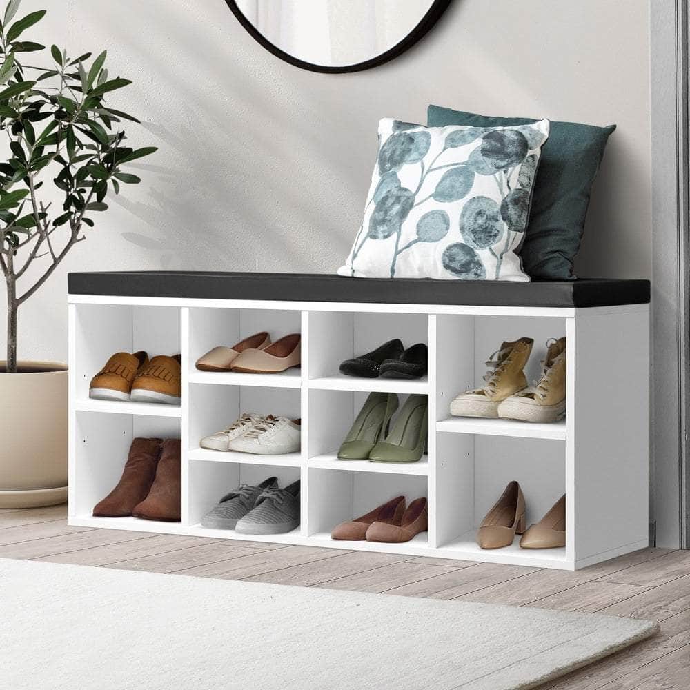 The shoe storage bench is certainly not lacking in any way. The meticulous craftsmanship sees a thoughtful attention to details such as the 15mm thick E1 particle board construction for strength, the non-toxic melamine finish for durability, anti-rust nickel-plated steel hinges for heavy-duty reliability, 35D foam for comfortable 4cm thick seat cushioning, and the quality PU leather upholstery for easy cleaning and maintenance as well as classy looks. Better still, lift the bench and you will find acres of hidden storage space for your footwear knick knacks or even household items. Not least, the compartments with adjustable shelves outside provide easy-fit ins and have your favourite pairs on call fast and handy.