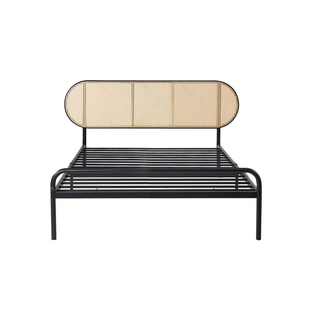Metal and rattan in perfect harmony. The Viny Metal Bed Frame is the epitome of eclectic design that blends the different elements to create a spectacular whole. In particular, the black powder-coated metal finish gives the bed frame a stylish noir vibe while the unique capsule-profile rattan headboard exudes a chic and mesmerising presence.