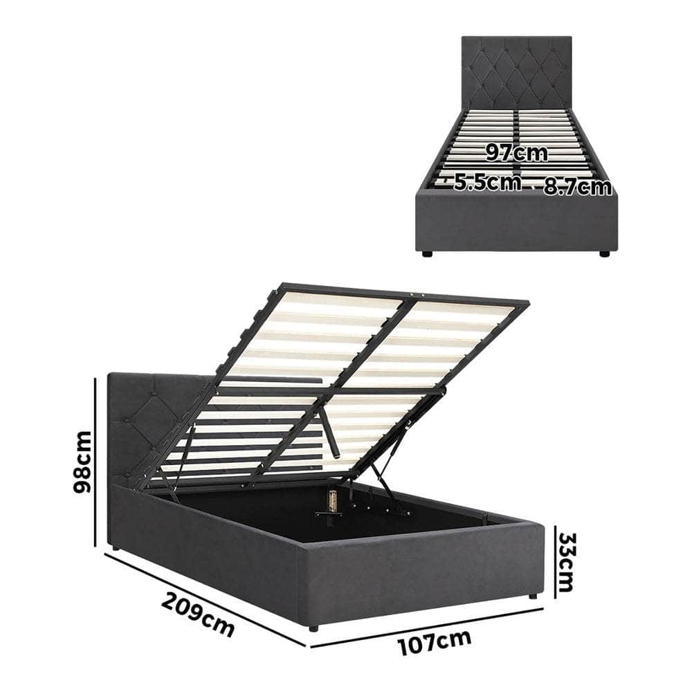 Plus, the bed frame is definitely more than meets the eye. With its gas lift hinges, the bed can be easily brought up to reveal generous storage space for bedding and other assorted bedroom essentials. Certainly most welcome for the space-challenge real estate in your bedroom or home. Not least, setting up the bed frame is hassle-free with the easy-to-follow instructions to get you enjoying your forty winks in no time at all. The Wooden Bed Frame is compatible for use with most Australian-sized mattresses and is available in King Single, Double, Queen and King sizes.