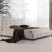 King Bed Frame PU Leather Button Tufted Headboard White Design