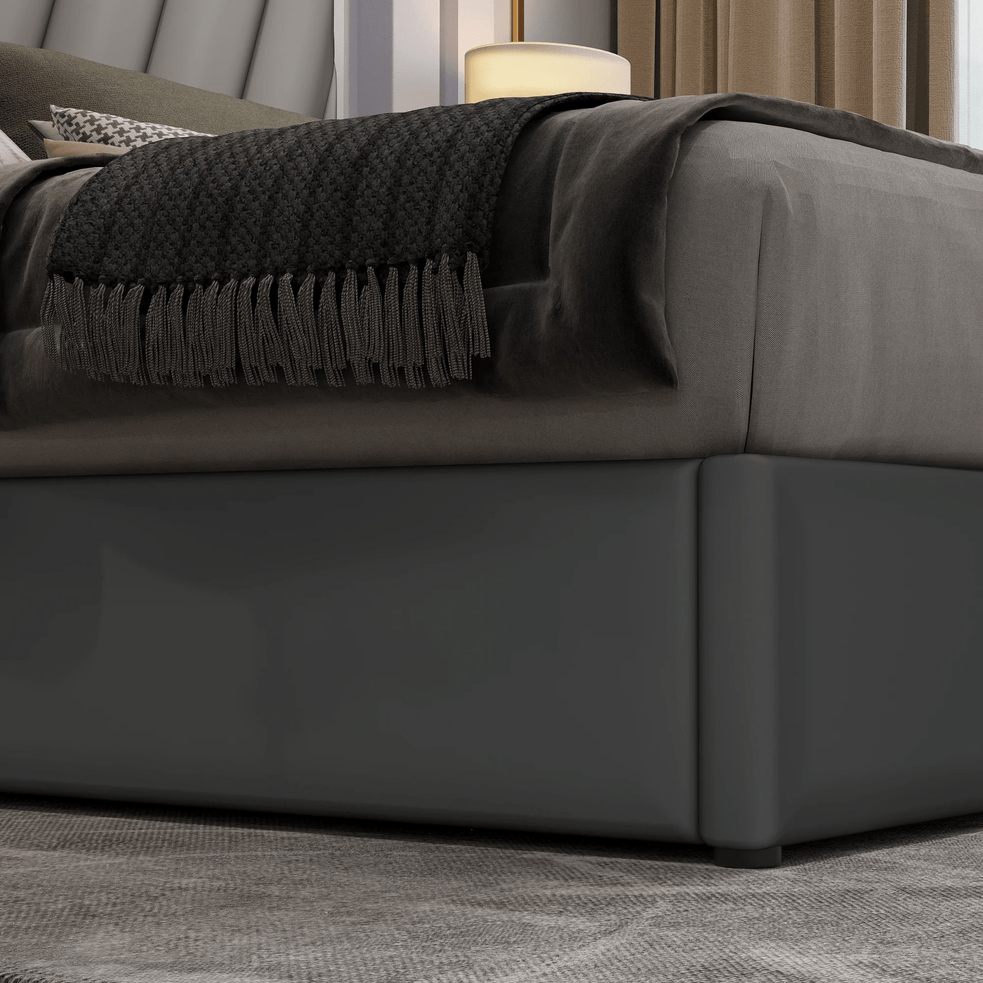 PU Leather Bedframe with Golden Trim in Grey King Size