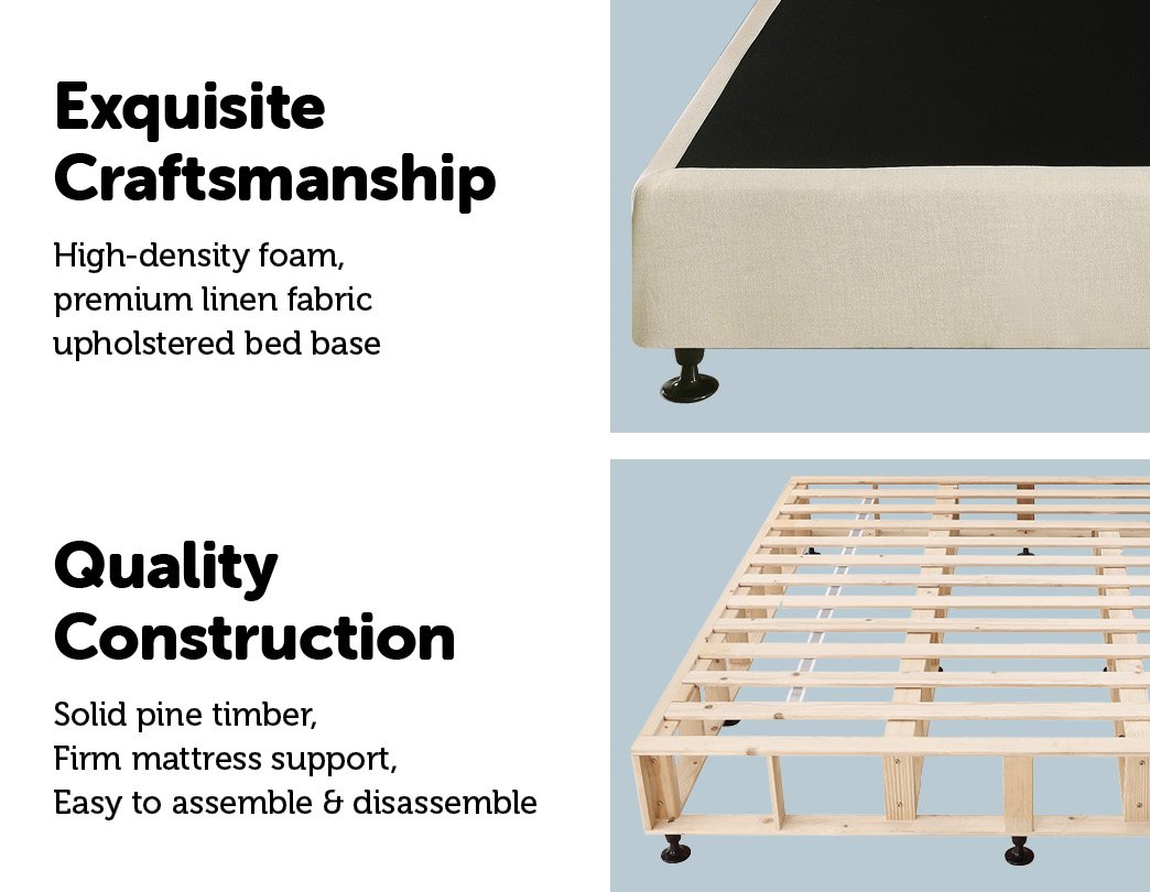 • Materials: Solid pine timber, high-density foam, and premium linen fabric upholstered bed base