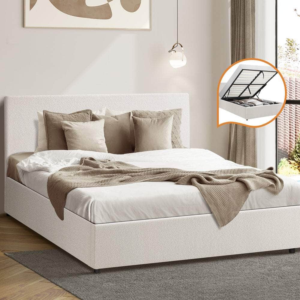 Get the ultimate space saver with Gas Lift Bed Frame that is a contemporary and classic piece that give you room an instant lift of elegance and style. Upholstered with premium boucle fabric and great attention to details, it's going for the perfect designer look.