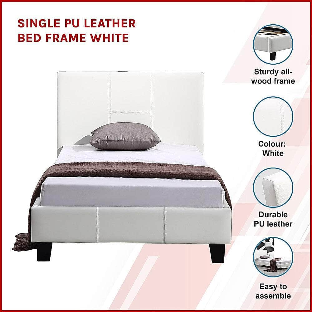 Give your bedroom a splash of color and complete your decor with our Single Bed Frame with PU Leather in white. Designed for a standard Australian sized single mattress (mattress not included), this complete bed frame and headboard is a great addition to any bedroom.