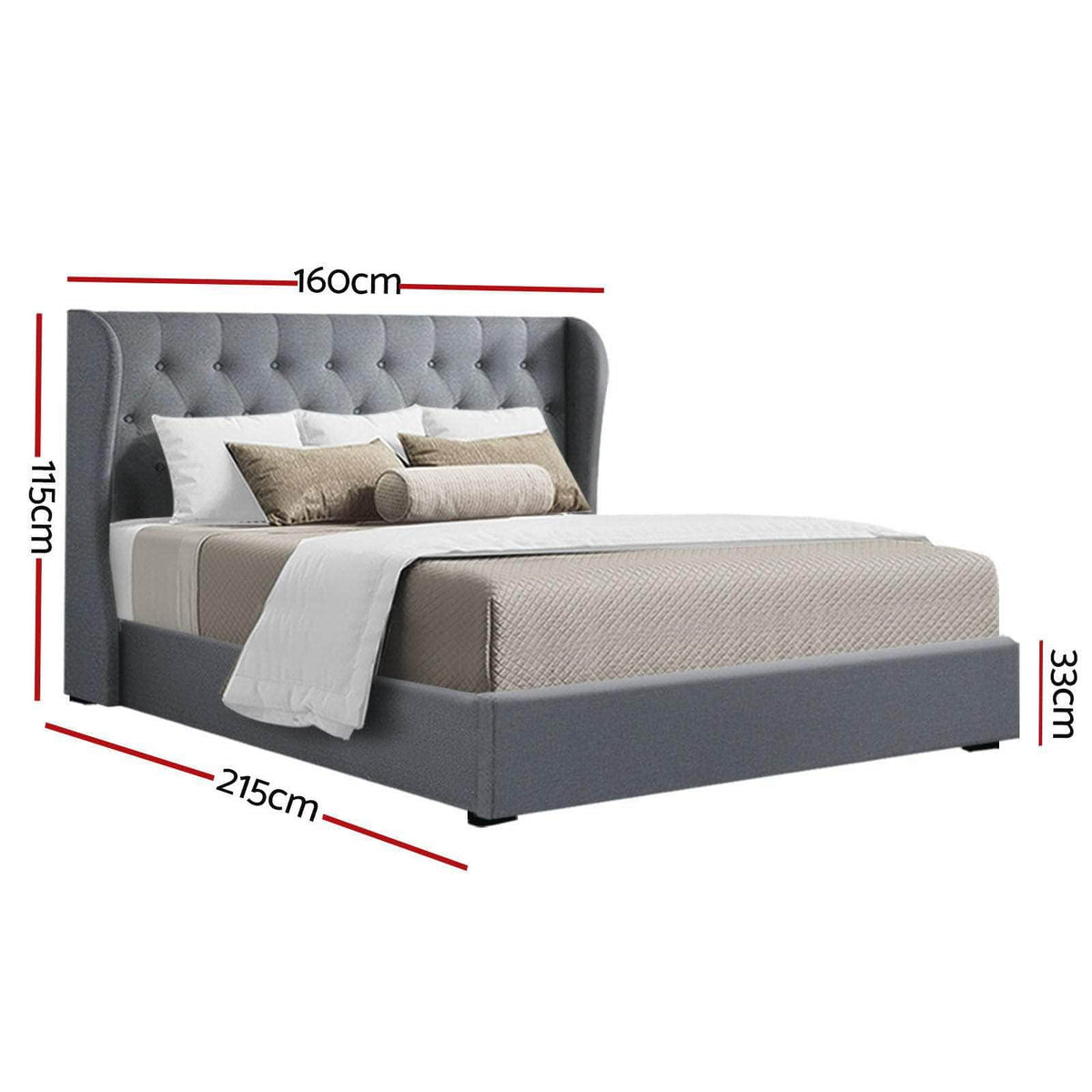 It is time to lie down and rest in total glamour and style. Beautifully padded with generous foam and covered in a faux linen fabric, this is the luxurious bed frame you all deserve. The elegant tufted headboard brings the prestige, whilst the strong steel frame with reinforced steel bars and a wooden arched slat base can put your mind at ease as you know you are sleeping on quality. One of the best qualities is the fact the bed frame has a gas lift which creates an instant storage area with ample space for you to hide away your items. This bed frame has brains and beauty!