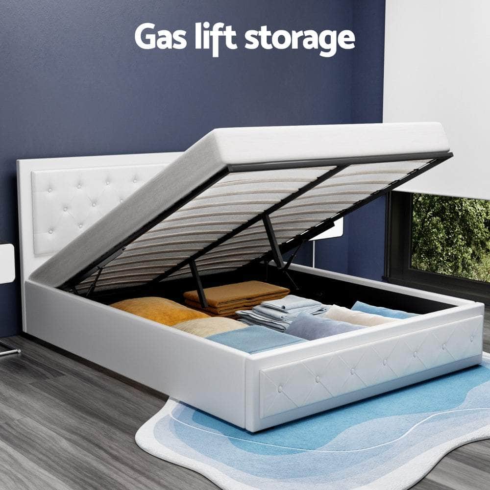 From first glance, our contemporary Tiyo Gas Lift Bed Frame looks phenomenal. The premium PVC leather tufted headboard and sides all exude fine craftsmanship and luxury. But there is more. Lift up the bed base and you will find ample storage space under the wooden arched slat base. The gas lift system and hand strap enable you to effortlessly lift the bed to store items you wish to hide away until a later date. The wooden arched slat base is also designed to flex appropriately so that it can better distribute the weight exerted on it and stop disturbances in the night if your partner likes to move about. Enjoy your wonderful sleep in more ways than one with our innovative Tiyo Gas Lift Bed Frame, it is definitely brains and beauty!
