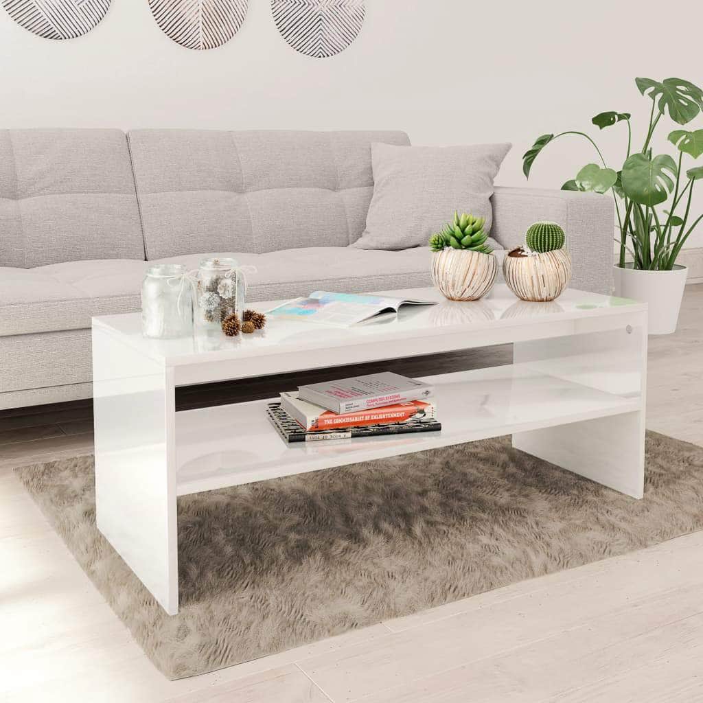 Add a touch of elegance with our stylish coffee table with a shelf. With fine craftsmanship, it will be an instant upgrade to your living room interior. Whether you are looking for a coffee table to rest your drinks or other necessities, or an end table with storage function, this table has it all. Distinctive open shelf brings artful organization to magazines, books and more, whereas the contemporary design with a flair of Scandinavian style compliments the existing decor of your home. Made of quality engineered wood, this coffee table is built to last. The end table is easy to clean with damp cloth. This couch table is easy to assemble with included mounting materials.