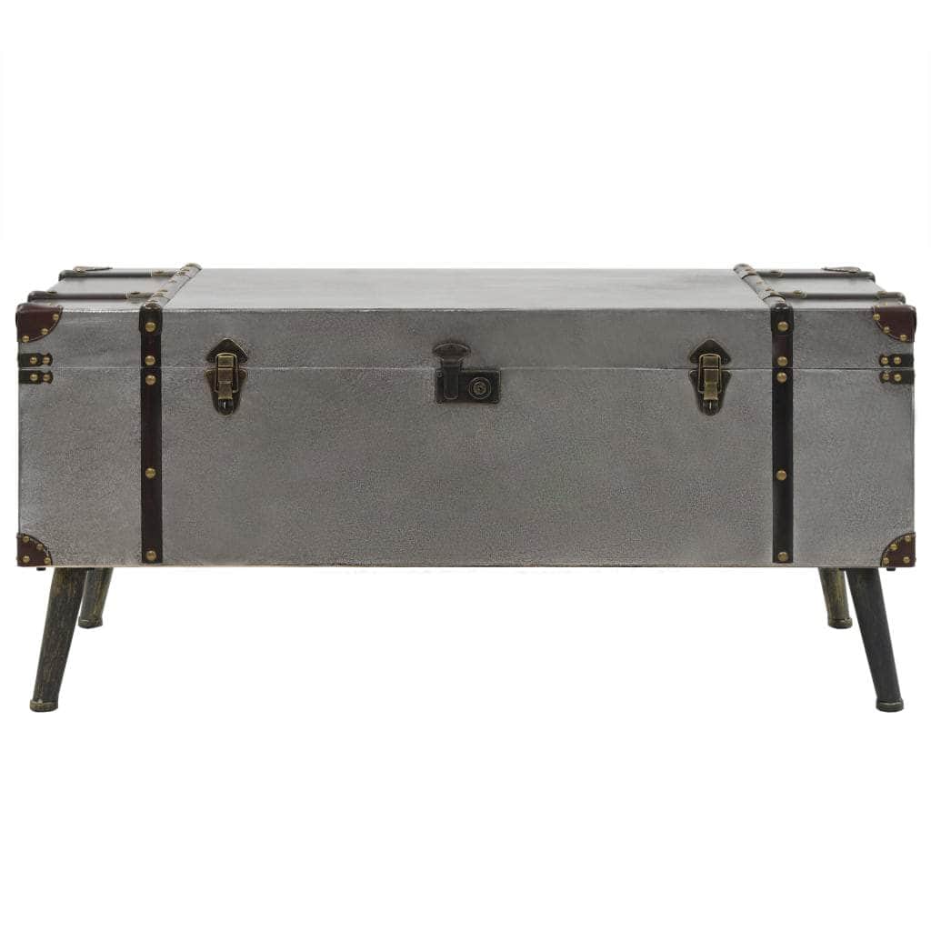 This unique coffee table in the shape of a travelling trunk will make a stylish addition to your decor with its spectacular vintage design. It can also be used as a side table or end table. This durable and beautiful table is made of aluminium-faced MDF with a nonwoven fabric liner and sturdy steel legs that add to its rustic charm. The tabletop is ideal for placing drinks, vases, potted plants, fruit baskets, and other decorative items. This storage box has two interior compartments that have ample space for storing throw blankets, books, magazines, remote controls, and any other items you'd like to keep hidden from view yet within reach. Thanks to its soft and comfortable handles, the trunk coffee table can be easily moved around in your living room. Assembly of this item is easy.