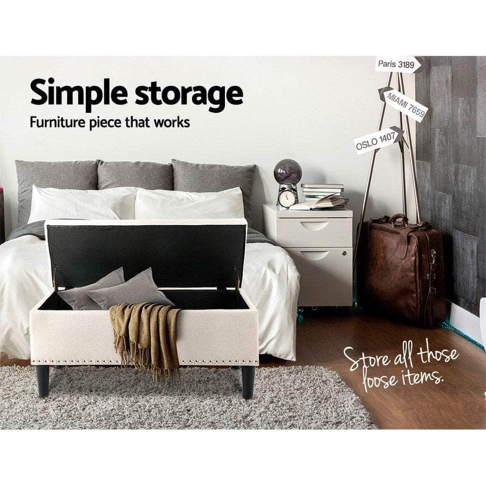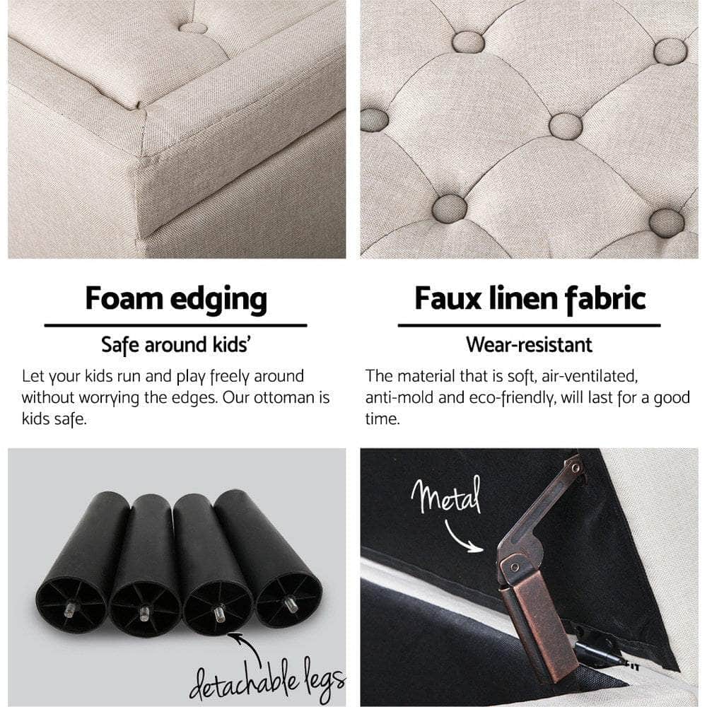 Storage Ottoman Blanket Box 96cm Linen Taupe