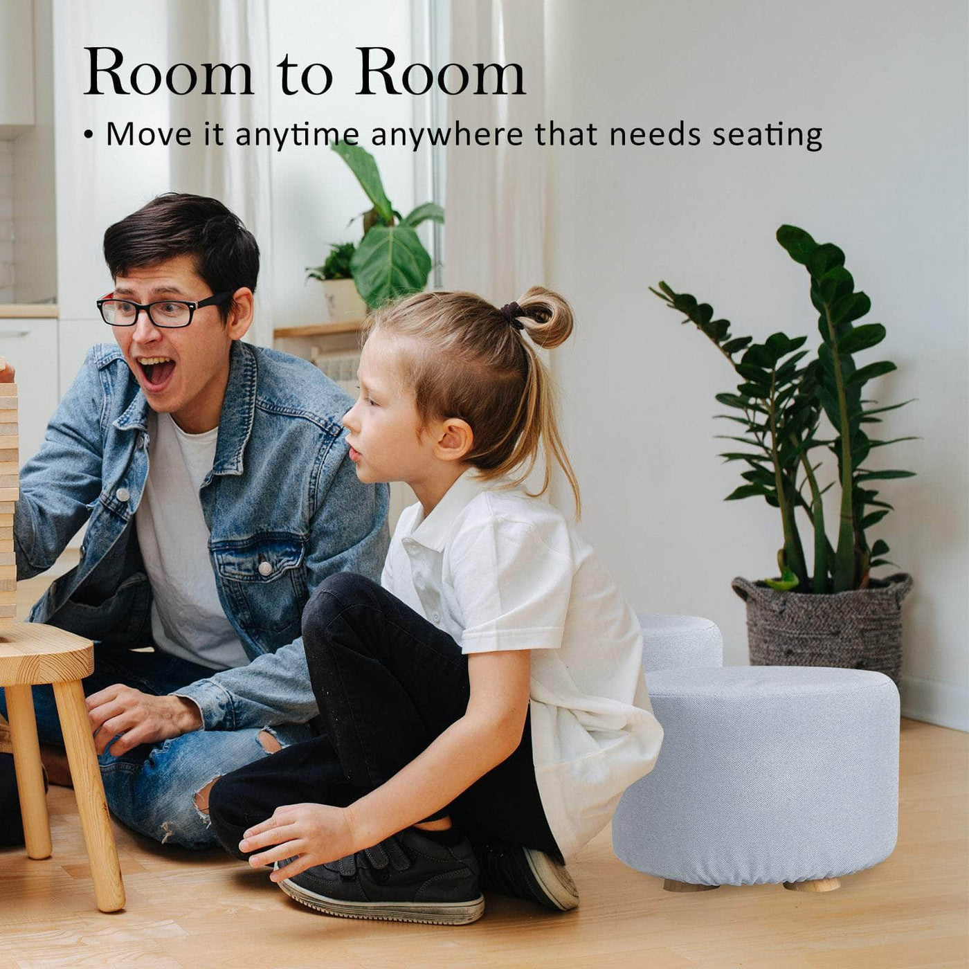 Ottoman Round Stool Fabric Wooden Leg Foot - Light Blue