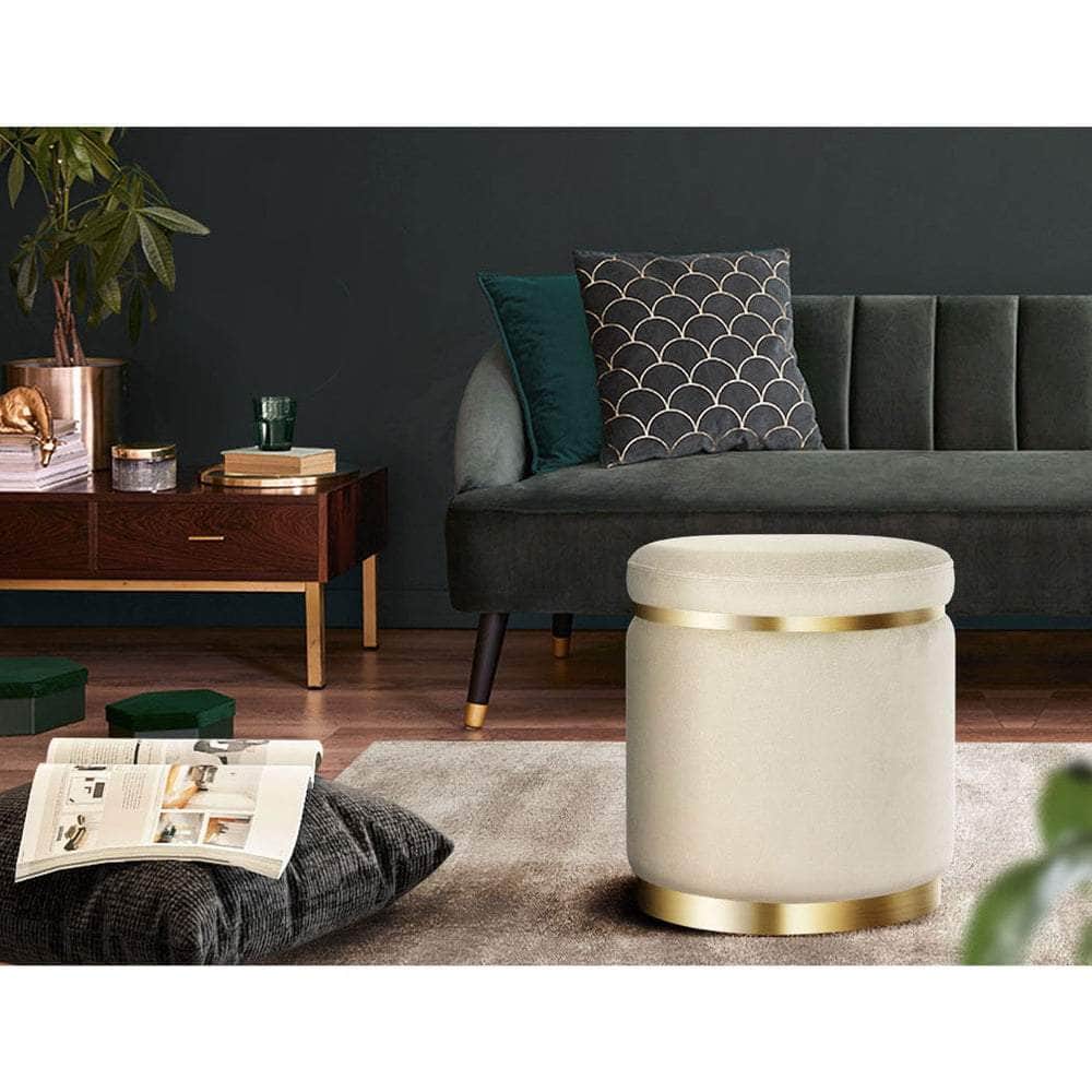 Your lounge room is the epicentre of the home, so it's no surprise that you want it to look great. For that extra touch of elegance, look no further than our premium Footstool. With an elegant, tufted seat and upholstered in soft velvet, our footstool is the perfect place to rest your feet and adds a plush touch to any home. Made of quality material, the footstool is strong and sturdy, and stands up to robust use. The stainless-steel gold rings give it extra stability as well as a touch of class, while floor protection pads keep your floors safe and sound. Whether you are using it as extra lounge seating, bedroom décor or your favourite footrest, our multifunctional and versatile footstool matches form with function perfectly and elegantly.
