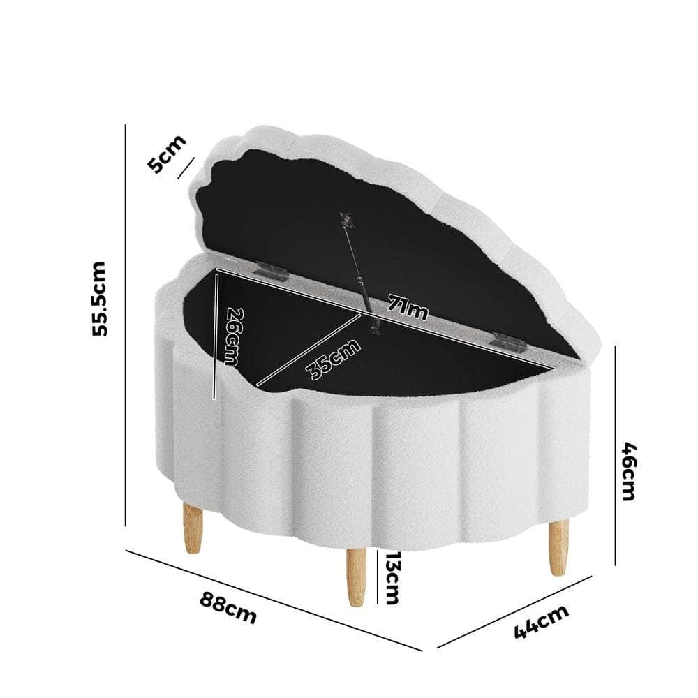 Storage Ottoman Scallop Boucle Fleece Foot Stool Seat Chest