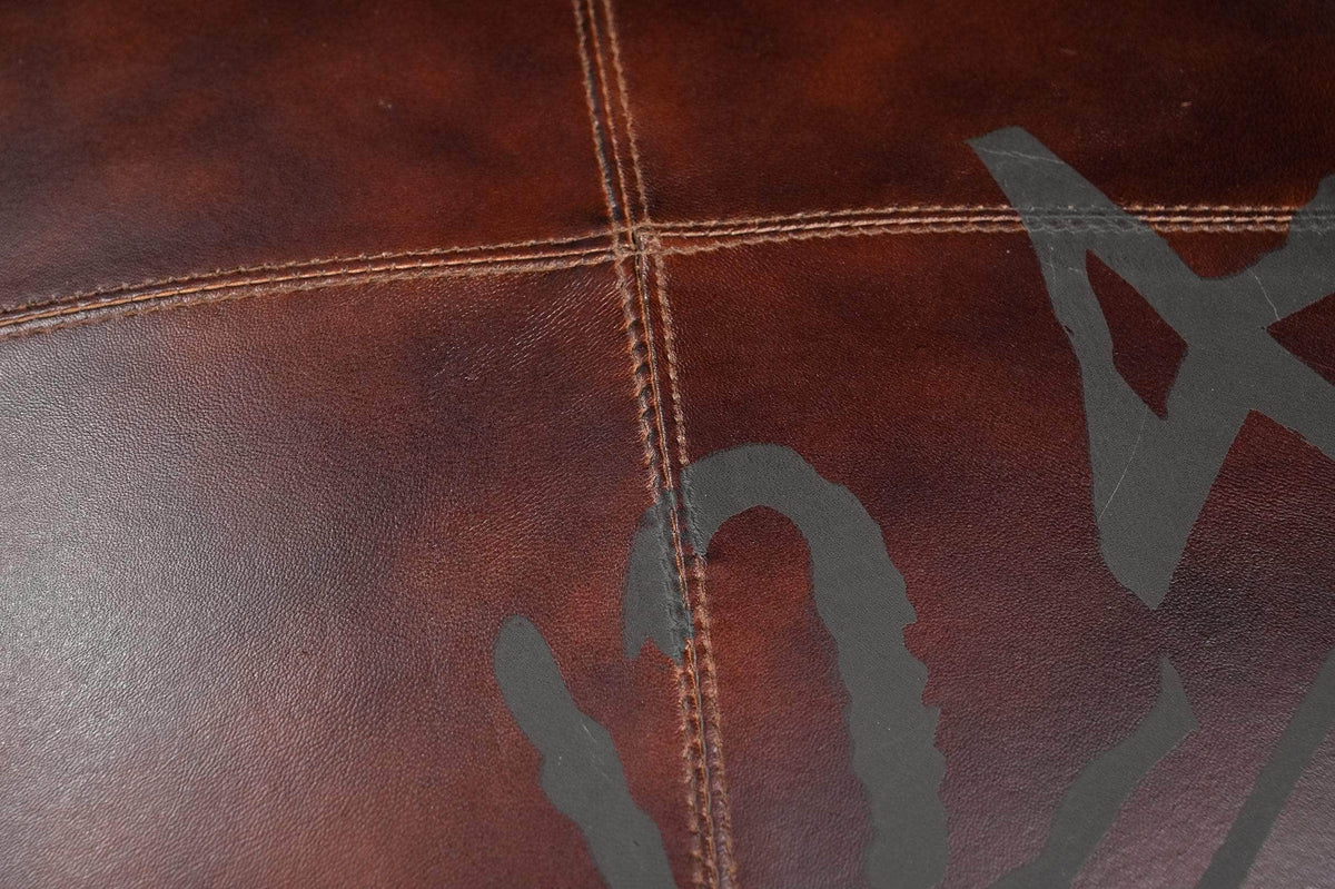 The rich, distressed leather and old Indian army tents used to create our Vintage Round Ottoman create a unique, classic and eye-catching decor piece. A wonderful addition to studies, living and entertaining areas.