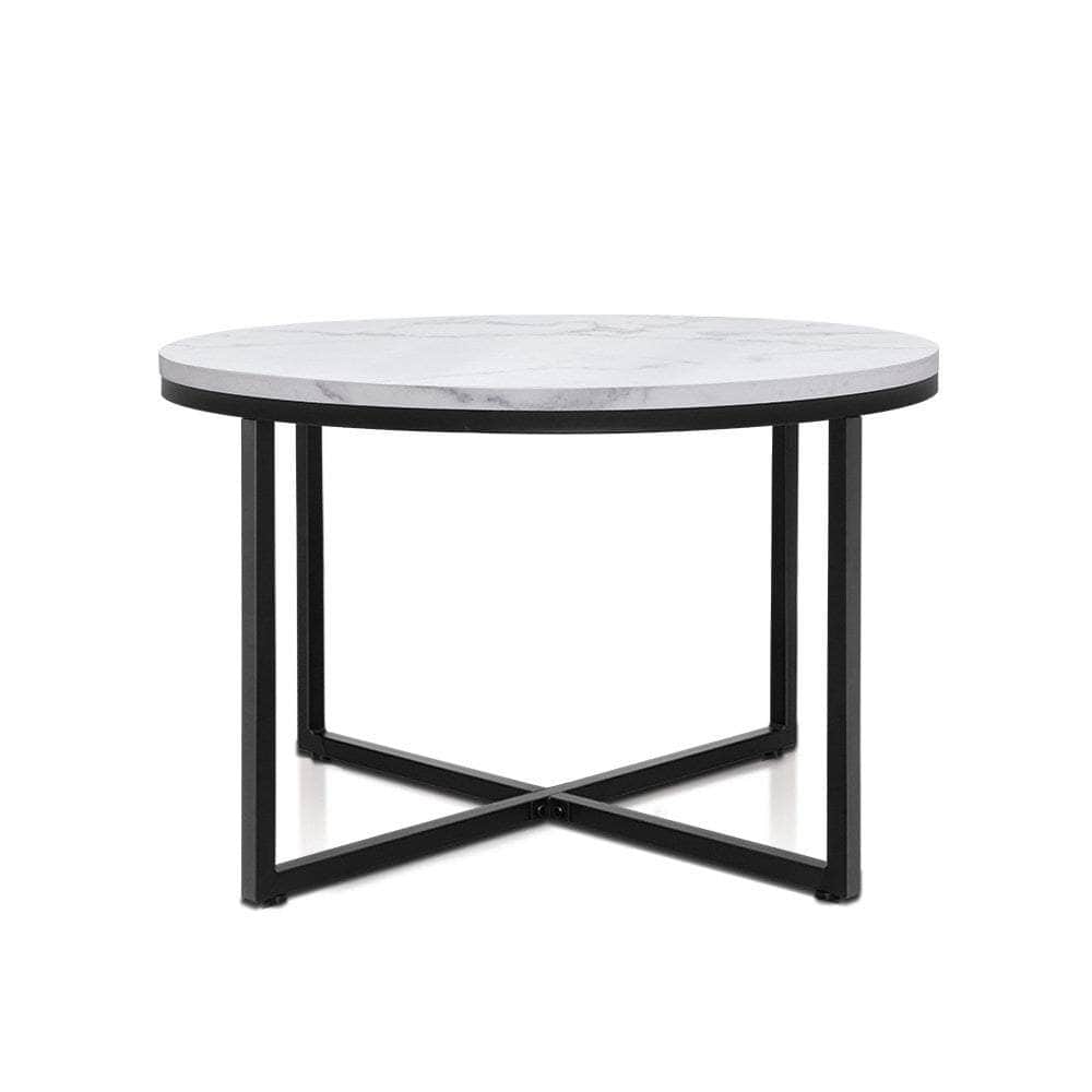 Simple and modernistic. Our Artiss Coffee Table makes for a resounding statement in style, function and practicality that fits in brilliantly with any discerning home decor. Featuring a black powder-coated metal tube base topped with a premium E1 grade MDF tabletop with elegant marble-texture laminate finish, our coffee table instantly makes an impression in your living room with its minimalist cues. The round table is smooth with safe rounded edges, whilst the unique X-shape leg design gives the coffee table loads of character as well as providing a very stable base. Not least, heavy-duty fixings and anti-slip rubber feet complete this charismatic ensemble. Wherever the coffee table is used, rest assured that it will be an astounding presence.