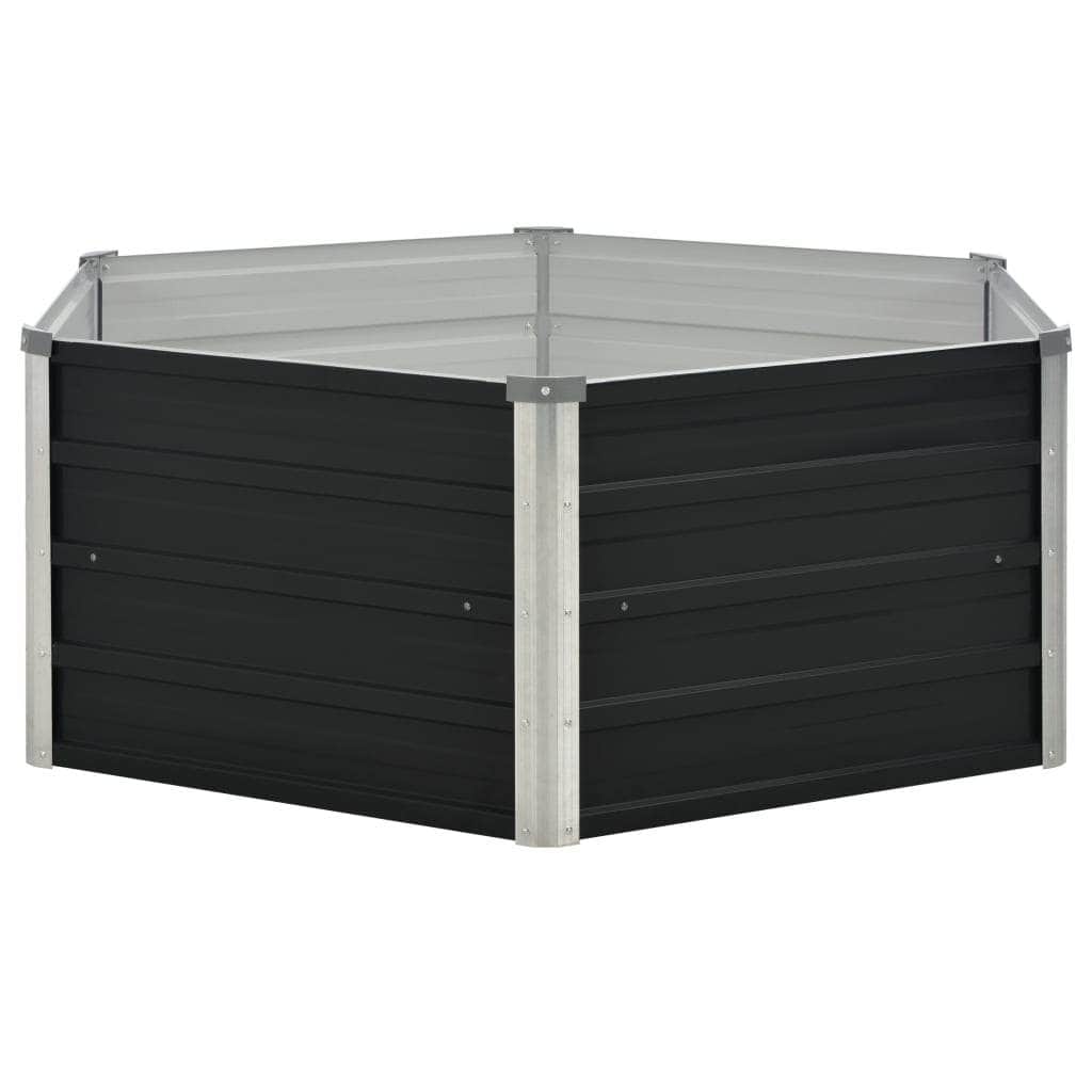 This raised garden bed is extremely durable and beautifully made. It is deep and wide enough to hold a large amount of soil and provide ample space for your plants, vegetables, herbs and flowers. Thanks to its simple hexagon design, it will make a stylish addition to any balcony, deck or patio. Made of galvanised steel and equipped with interior support brackets, this planter is exceedingly sturdy and durable. Additionally, the rim of the planter has an edge fold design so no dangerous sharp edges are exposed. The garden planter is easy to assemble.