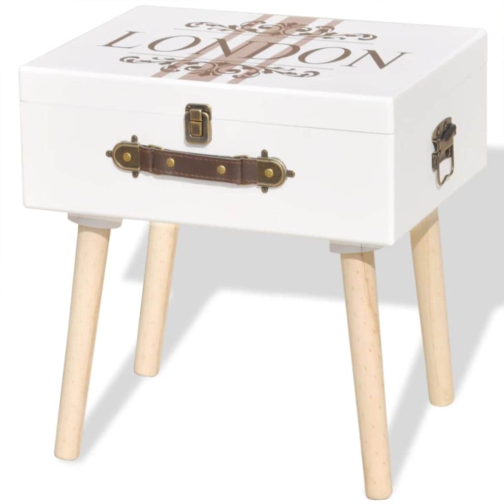 This quirky side cabinet is shaped like a vintage suitcase. It can also be used as a telephone stand. This side cabinet will make a practical as well as highly decorative addition to your living area, lounge room or bedroom. The rectangular tabletop is ideal for displaying decorative objects, photo frames, or even potted plants, and there is ample space inside the suitcase for keeping all kinds of smaller items organised and within reach. Made of the high-quality MDF, this suitcase end table is very sturdy and durable. The wooden pin legs add to its sturdiness as well as its visual appeal. Assembly is really easy.