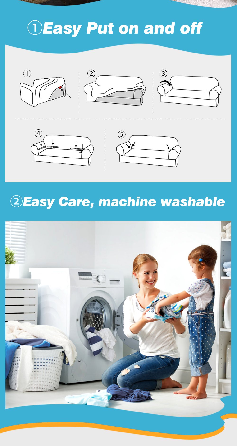 Also, the sofa cover is removable and machine washable for easy maintenance. It is available in a choice of colours and sizes.