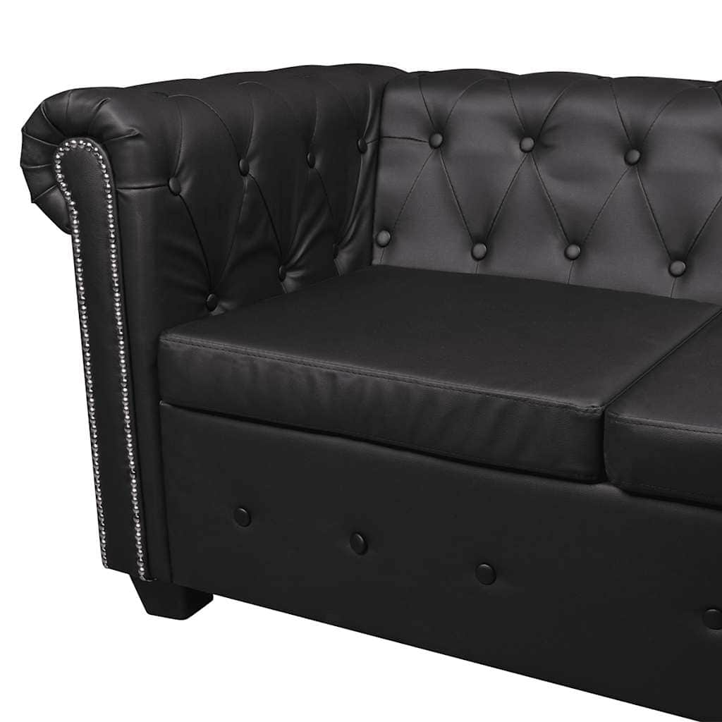 This Chesterfield corner sofa is the perfect blend of comfort and sophistication and will make a great addition to any home or office. This 5-seater sofa, with its tufted and studded detailing and gracefully curved arms, will add a touch of luxury, class and style to any interior. The thickly padded seat is highly comfortable, while the elegant structure is sturdy and durable. The quality artificial leather upholstery is easy to clean and hard-wearing. Assembly is very easy.
