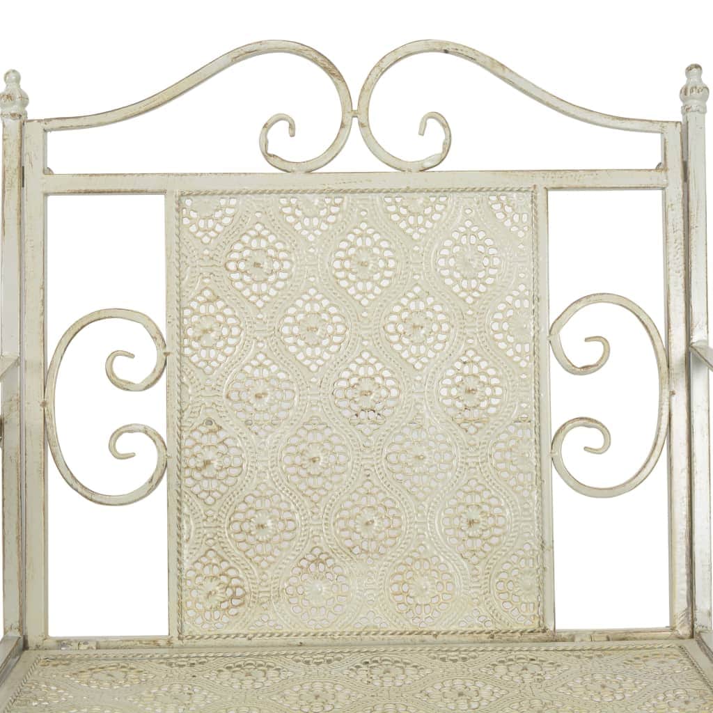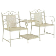 This vintage-style outdoor loveseat will make a practical as well as decorative addition to your garden! The two-seater in British style is made of powder-coated steel, which makes it very stable, durable, and rust resistant. The fancy hand-painted decorations and the rusted finish will make this stylish garden bench stand out in any garden or on any patio or balcony. The integrated table and lower shelf between the seats are ideal for drinks, food, books, and any other items you'd like to keep within reach. Have a nice, intimate conversation with your loved one on this chic love seat!