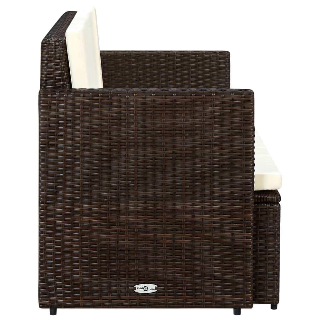 This poly rattan 2-seater sofa will offer a stylish seating area for your garden or patio. Thanks to the water-resistant PE rattan, the patio sofa is easy to clean, hard-wearing and suitable for daily outdoor use. The bench will be delivered with highly comfortable, thickly padded seat and back cushions to offer ultimate seating comfort. The easy-care polyester covers can also be removed and washed. This sofa can be easily moved to suit any settings. It is easy to assemble. Delivery includes 1 two-seater sofa and 4 seat cushions. Note: We recommend covering the sofa during rain, snow and frost for its best service to last.