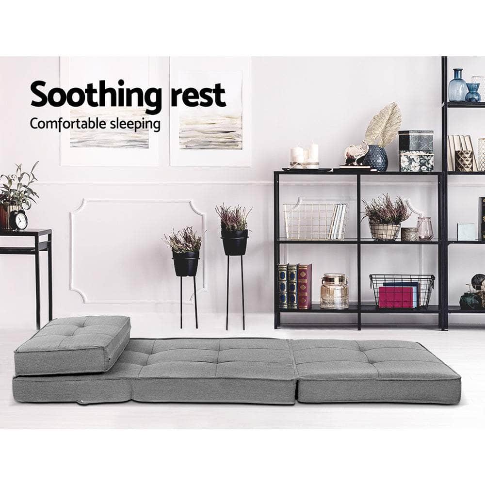 Designed to be fully adjustable, our Lounge Sofa Bed perfectly angled for reading, watching TV or surfing on your device, or have it fully flat for restful sleep. Fact is, there are five adjustable angles with three locking position: head, waist and leg, so that you can enjoy your activity in the most precise and supportive position. Made of heavy-duty steel, the lounge sofa bed is strong and sturdy. Plus, the generously padded sofa bed features a high-resilience cushion and upholstered in double-stitched skin-soft linen are total comfort. Better still, the cover can be removed for cleaning when required. Not least, the lounge sofa bed can be folded foe space-saving storage.
