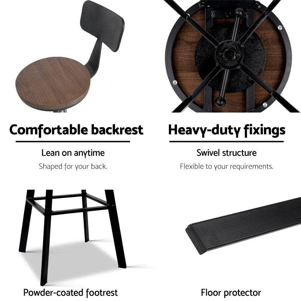 Made from a mixture of metal and wood, the elm wood seat is smooth and stylishly complements the steel contoured backrest and frame. It features a 360 degree swivel seat and can be adjusted to different heights based on the consumers' preference. There are also anti-slip rubber protectors on the base of the legs, to keep your floors pristine and scratch free.