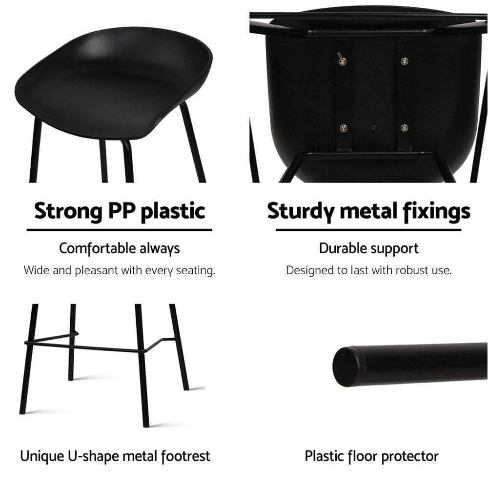 Set of 2 Bar Stools with PP Plastic Seat Black