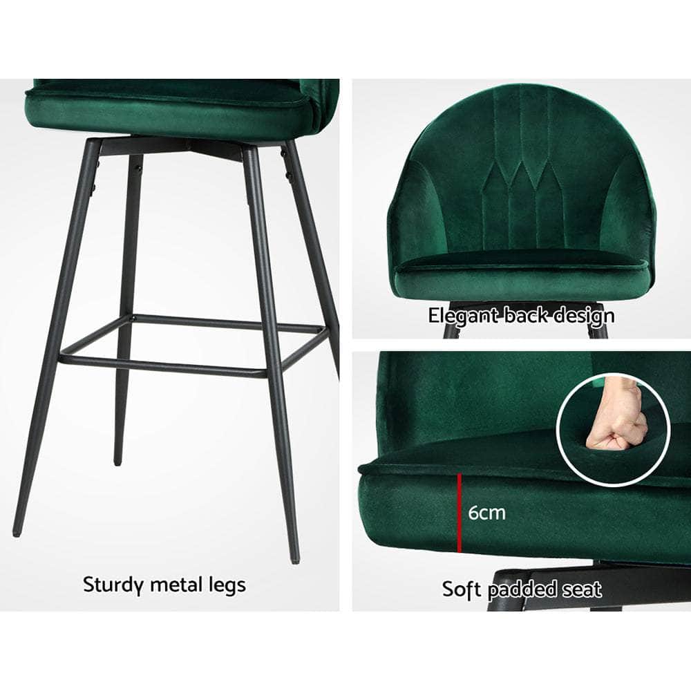 Not an ordinary piece of furniture but stands out in every aspect, whether it's craftsmanship, style, upholstery, comfort, or quality that speaks for itself. If you're after achieving an elegant and luxurious feel to your space, our' Mesial bar stools with an elegant back and seat design are just perfect. They're great for catchups over coffee with friends, a jam session with the band, or daily living. Our bar stools are uniquely designed that will make you want them in your space. You can style our Mesial bar stools anywhere, from living rooms to kitchen and the bar section, they will effortlessly fuse in any décor and lend an elegant and luxurious feel to your space. These bar stools can even be used as an impromptu seat when you need extra sitting space. Featuring elegant back and seat design with deluxe velvet upholstery, our bar stools have thick foam soft padded seats, sturdy metal legs, and anti-slip pads for ultimate stability and scratch-free floors. Their solid structure ensures longlasting use and superb durability. They also feature 360˚ rotatable seat so you can face any direction for ease of conversing with guests and family. Our Mesial bar stools make a timeless piece of furniture, and with four colour options, you can choose that best complements your space and suits your taste.' Mesial bar stools would make a luxurious addition to your space. Shop them today!