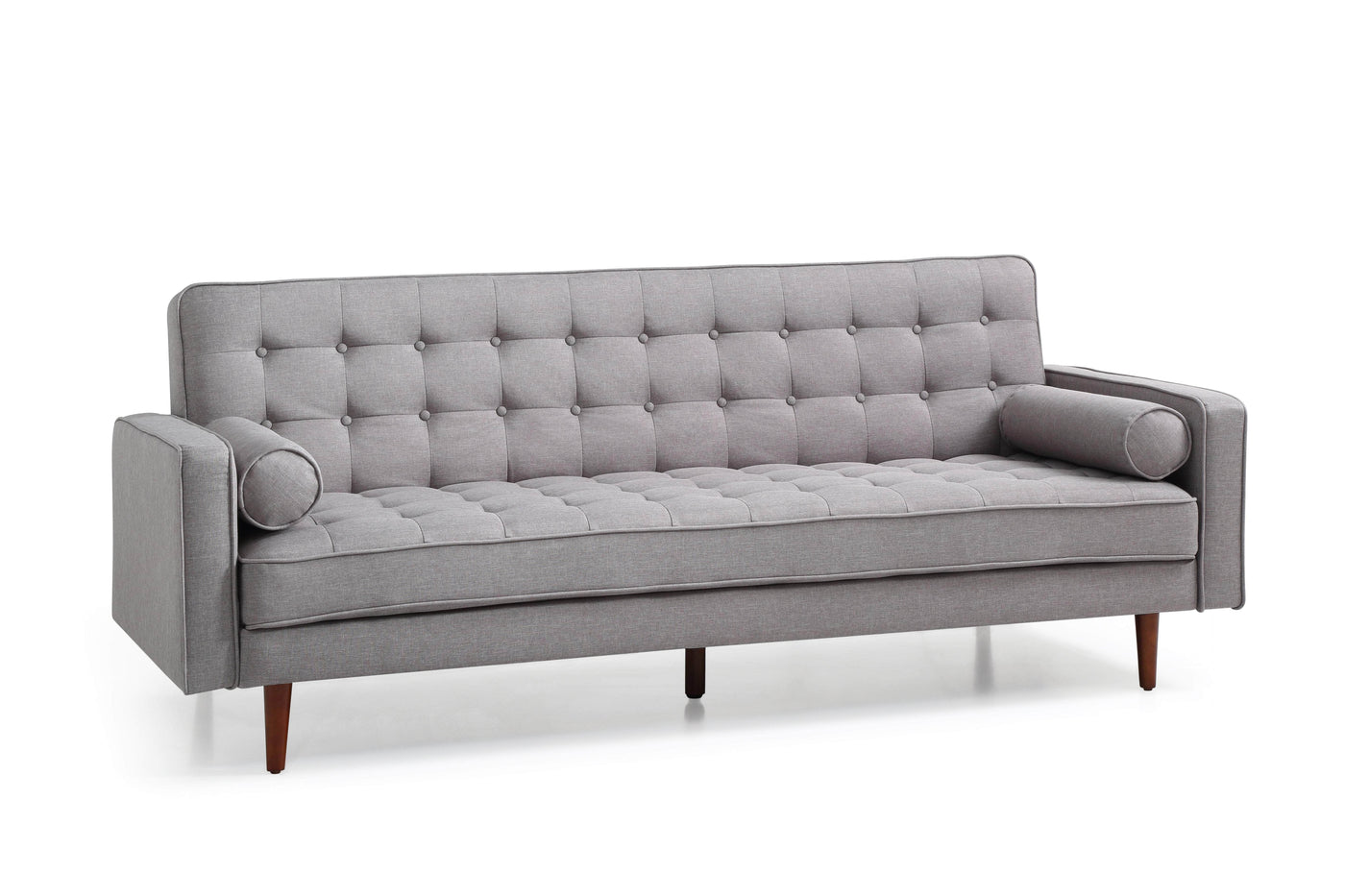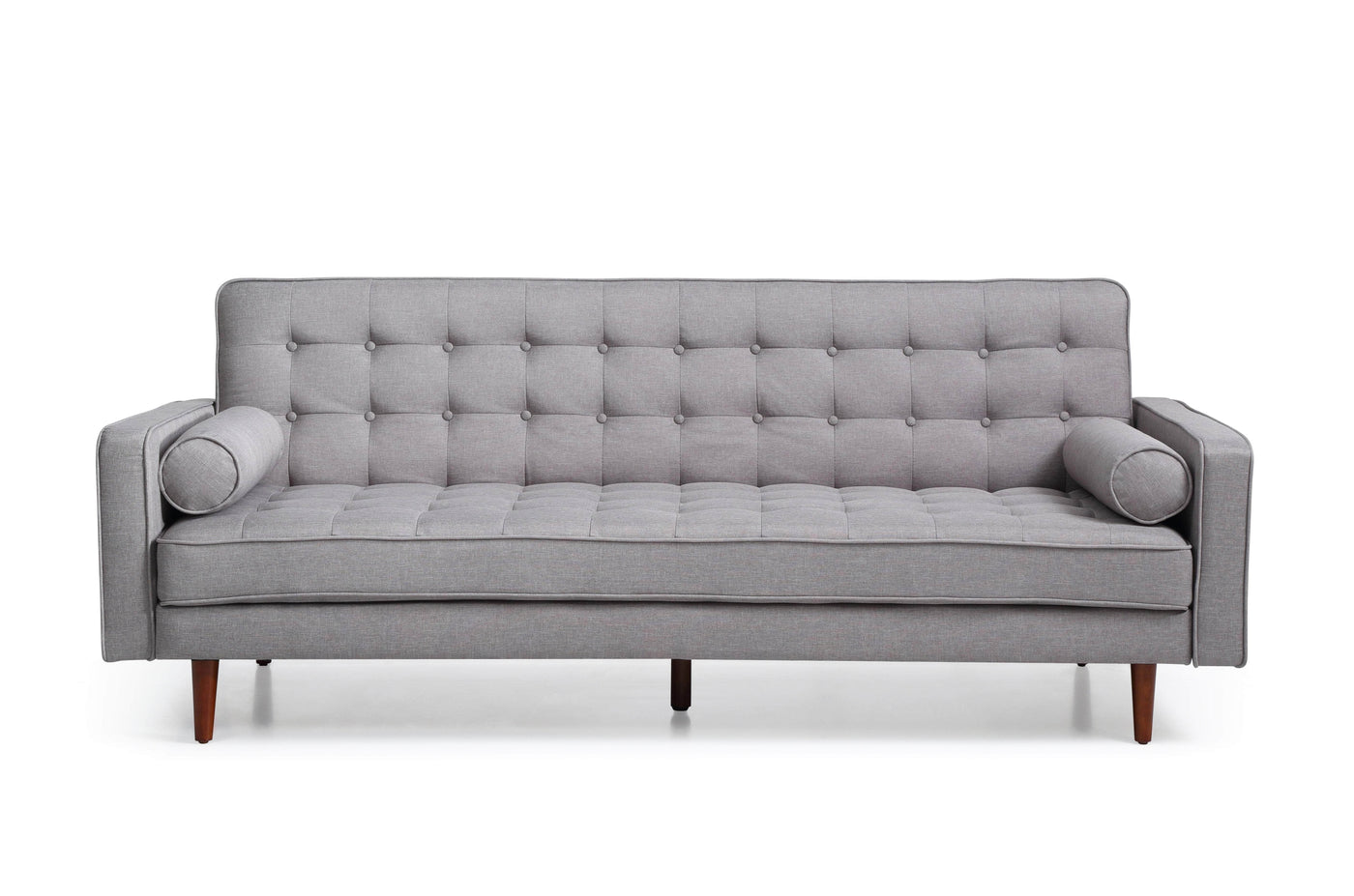 Grey Fabric 3-Seater Button-Tufted Sofa Bed