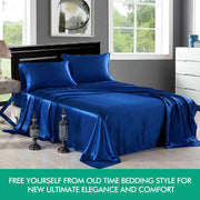 Dreamz Bed Sheet Set features a beautiful sheen that perfect fit for any interior. Shiny, silky-like cover have a sublimely smooth touch. Made from pure woven polyester satin, it gives into a luxurious night’s sleep. Soft and smooth texture prevents hair from frizzing, breakage, and split ends during sleep. Satin pillowcases prevent sleep lines appear on face yet do not retain any moisture which allow your skin care products remain fresh on your face. Free yourself from old time bedding style for new ultimate elegance and comfort. No wrinkles or creases. Easy to care for in the washing machine and dryer. Bed Sheet Set comes with fitted sheet, flat sheet and standard pillowcases. A huge range of luxurious and sensual colors available.
