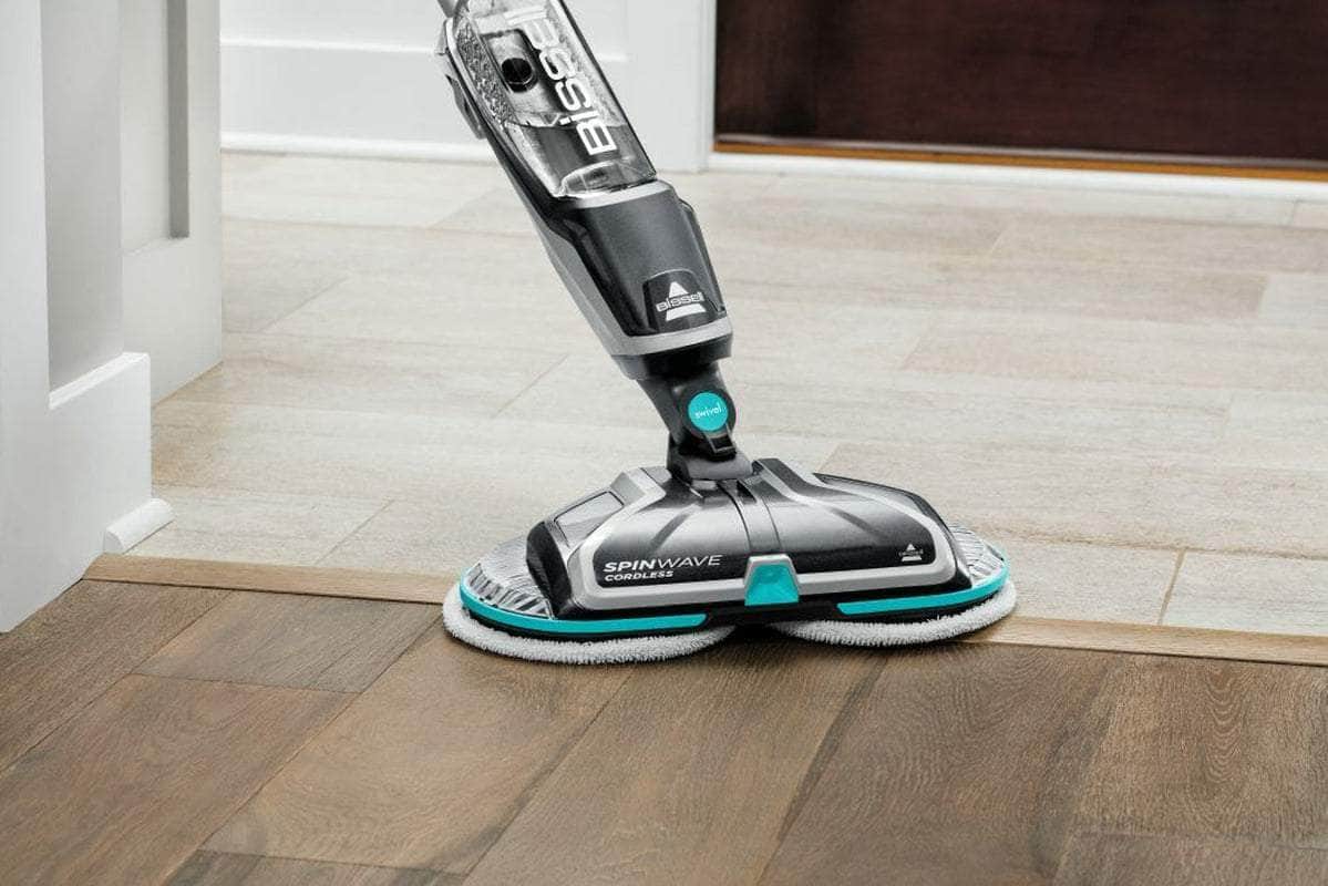 A convenient powerful electric mop that makes cleaning your hard floors easy with its power spin pads. Its on demand spray control allows you to manually choose the right amount of water and solution mixture that you need for each stain. Its soft touch pads are perfect for gently cleaning hard floors while its powerful scrubby helps remove tougher, stickier messes. It has a 20 minute run time on full charge.