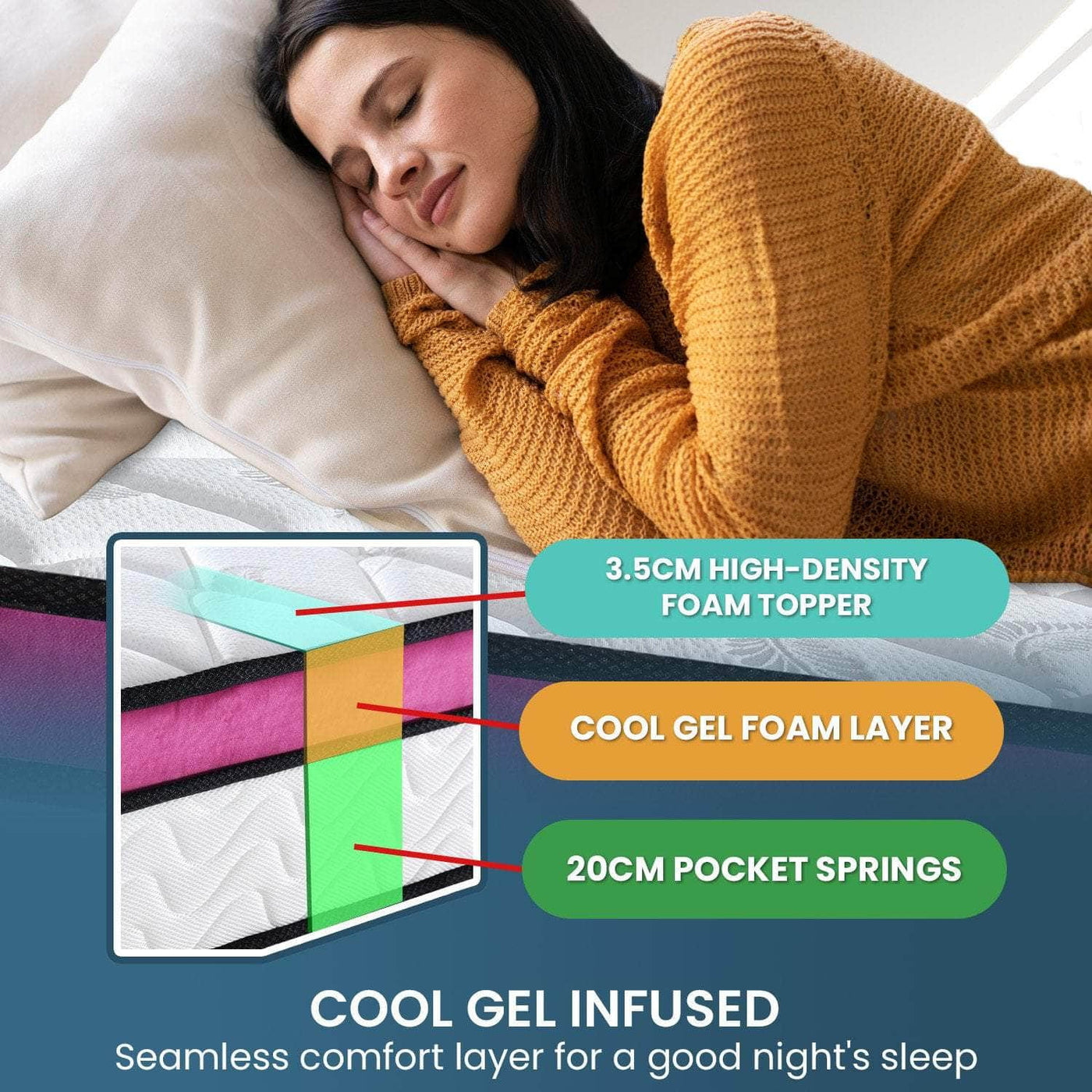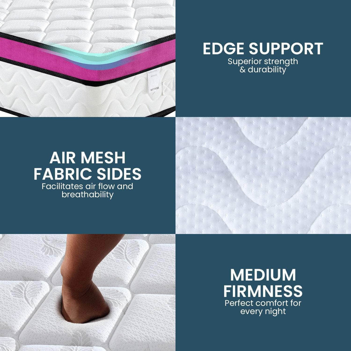 Pocket Springs follow the natural contours of your body for sublime comfort, reduces deformation and responds precisely to your every movement. Specifically zoned in 5 places to provide maximum support. It offers edge to edge support resulting in a larger sleep surface and ensuring this top quality mattress has a long life span.