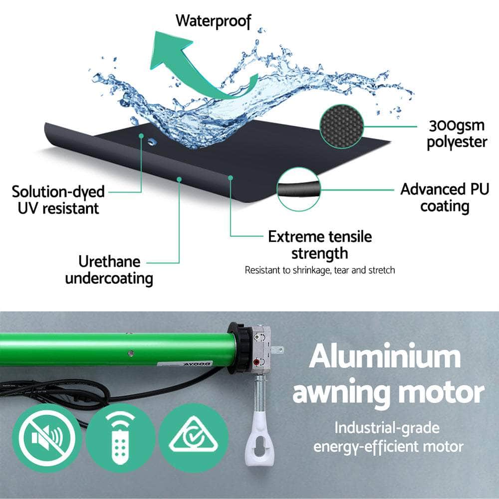 With its ample shading presence, our Auto Folding Arm Awning comprises a powder-coated enhanced aluminium frame and high-quality 300gsm polyester fabric shade. It also comes with an energy-efficient awning motor for even smoother operation. Both frame and shade are made UV-resistant and designed to be durable and reliable in all kinds of weather conditions(Only for normal weather condition,extrem weather condition is excluded).