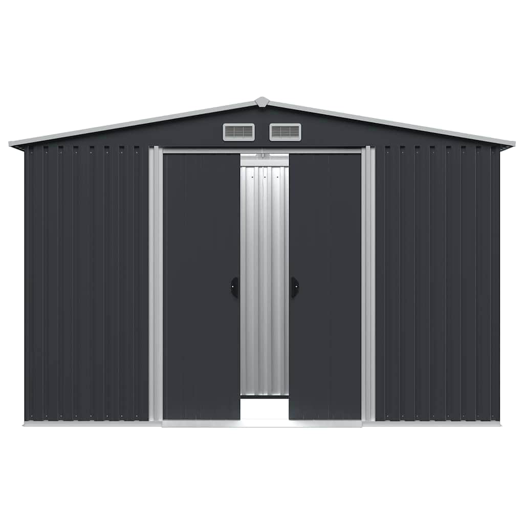 This metal storage shed will be perfect for storing a wide variety of tools and equipment. This storage shed has 4 vents, 2 in the front and 2 in the rear, ensuring excellent ventilation. The double sliding doors in the front allow easy entry and exit. The galvanised steel construction makes it durable and strong, so it won't corrode or be otherwise affected by extreme weather. It also includes a steel floor frame which adds stability and is perfect for a wood floor finish (wood not included). The pre-cut, pre-drilled parts and the included instruction manual ensure fast and easy assembly.