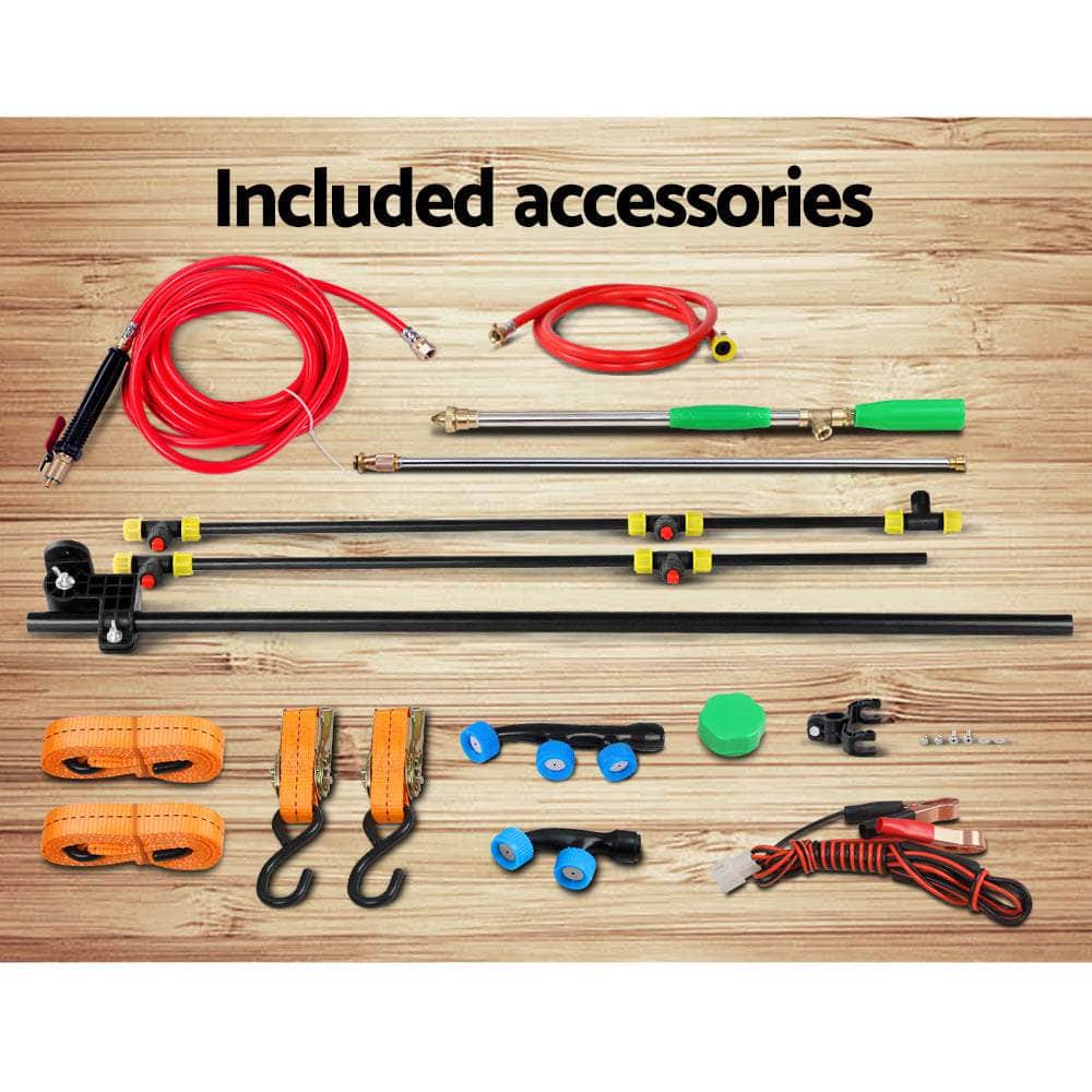 All components are designed to withstand robust use in any weather condition, including the 6m high pressure chemical-grade hose. Also included are three handheld spray nozzles. Not least, the boom can be adjusted for low or high level spraying.