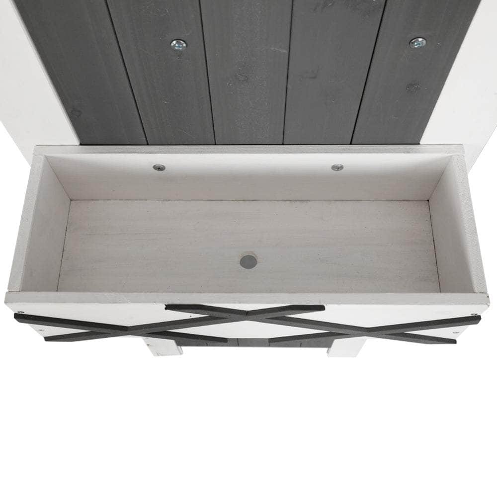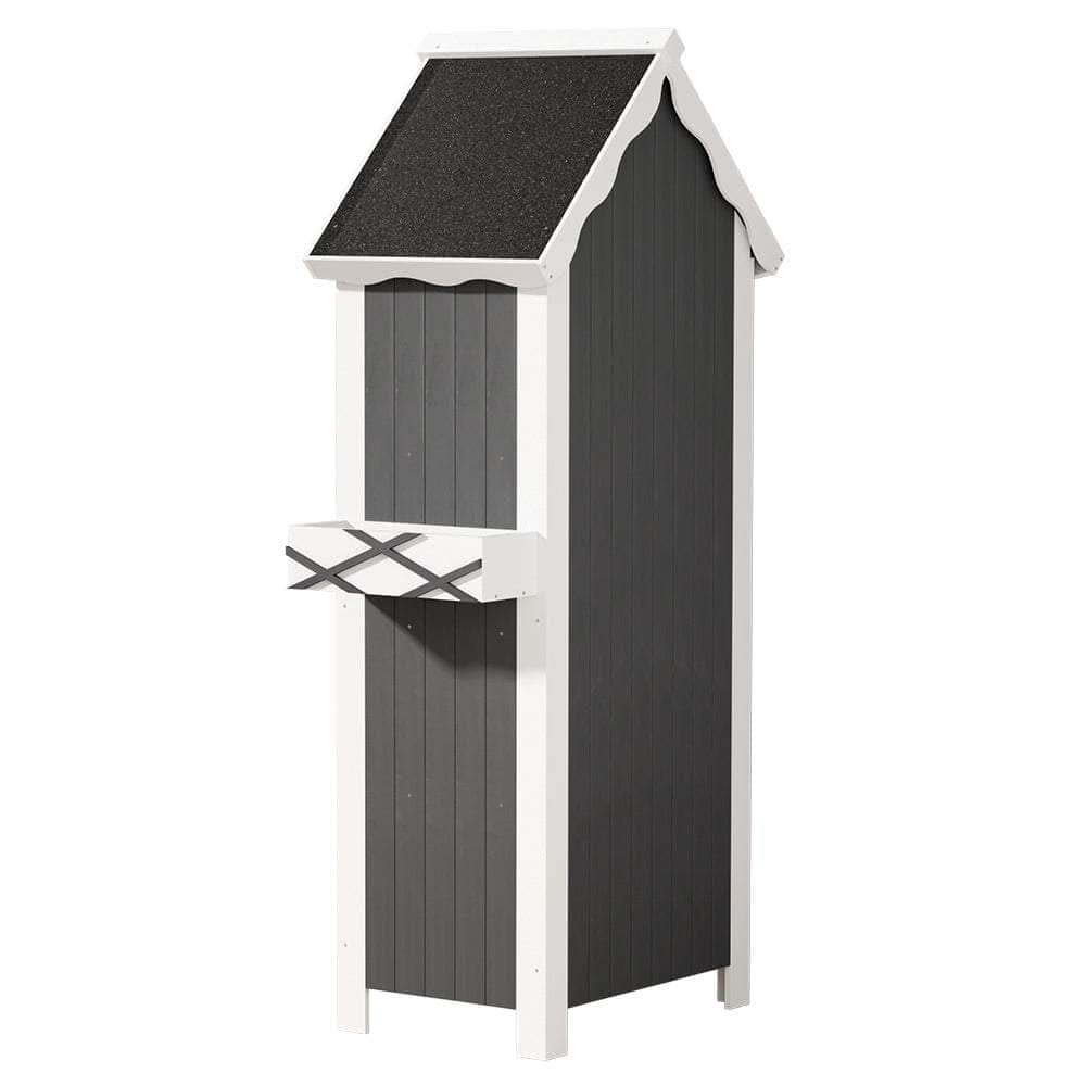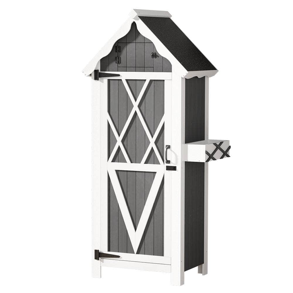 For stylish and practical outdoor furniture that can withstand any weather, look no further than the Wooden Storage Shed. The gorgeous cottage shed design is perfect for gardeners in need of generous storage space. The cabinet is made from solid Fir wood and features 3 tiers of shelving, 3 convenient hangers and a cute cuckoo-style upper compartment for all your gardening needs. Its weather-resistant structure and water-resistant asphalt roof will keep it standing through any kind of weather. The magnetic latched door will keep all your goods safe and sound away from the elements and backyard fauna. Use indoors or outdoors for unique rustic appeal. Easy to assemble and even easier to use, you'll love the convenience and style of the Wooden Storage Shed.